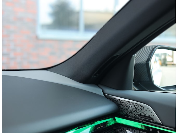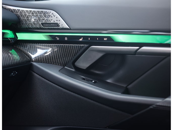 In de auto zet de stijlvolle uitstraling zich voort, en wordt u omringd door luxe en sportieve details. De Carbon interieurlijsten geven een exclusieve sfeer die wordt aangevuld met de Crafted Clarity bedieningselementen. Het panoramadak zorgt voor een fijne lichtinval en in de zomer voor een frisse bries. De zwarte Merino lederen comfortstoelen met geheugen zorgen ervoor dat u elke rit maximaal comfort ervaart, door onder andere de ventilatie voorin en de stoelverwarming voorin en achterin. Het Bowers en Wilkins Surround sound systeem zorgt voor krachtig geluid en een verfijnd rijplezier.