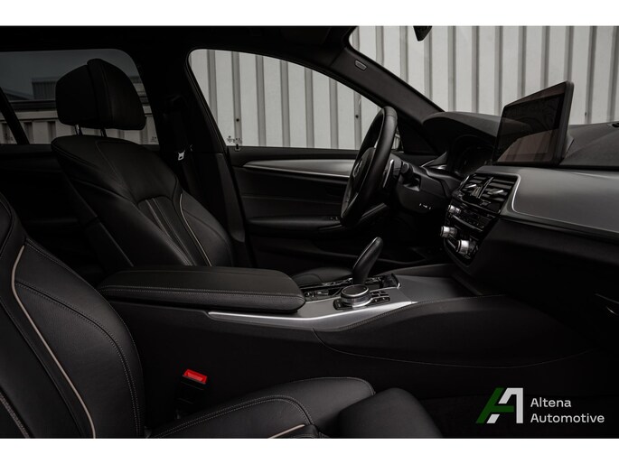 Uitgevoerd in Carbonzwart – een diepe, luxe kleur die afhankelijk van het licht subtiel verandert en perfect past bij het karakter van deze auto. In combinatie met het M Sportpakket staat hier een Touring met zowel uitstraling als klasse.