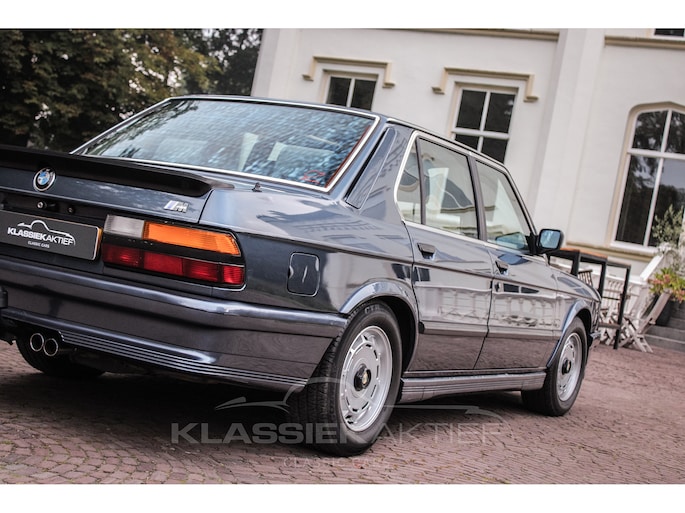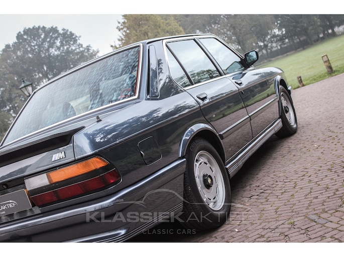 Deze origineel Nederlandse BMW M535i is geproduceerd in 1986 en geleverd door de toenmalige BMW-dealer in Nijkerk. Het serviceboekje is aanwezig en deels afgestempeld. De laatste eigenaar heeft de auto in bezit sinds 1989 en altijd met zeer veel liefde en zorg onderhouden. Er zijn ook nog recente onderhoudsfacturen aanwezig.