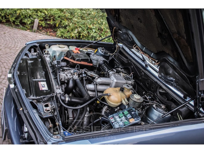 This beautiful BMW M535i still has its original Arktisblau metallic color with the matching, still completely original interior. The car has suffered some traces of use over time, but is still in very good condition. The original sliding-tilting roof works properly. The body color has a deep shine, the car has been partly repainted in the past. The body parts fit together well and the various rubber and trim parts are also still in excellent condition. The original tool set in the boot lid is also still complete.