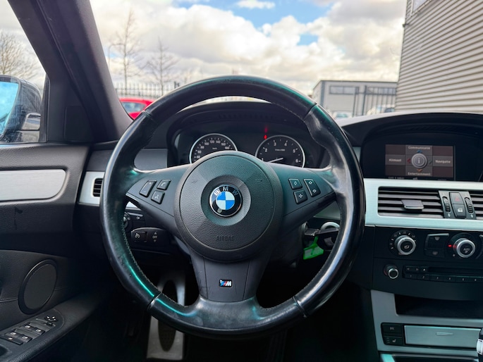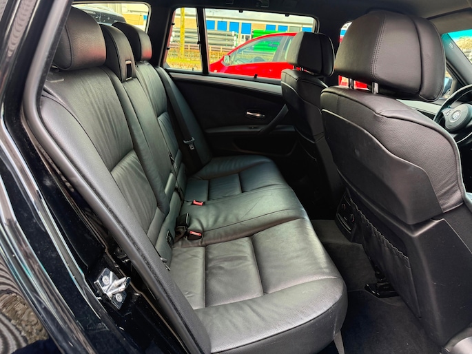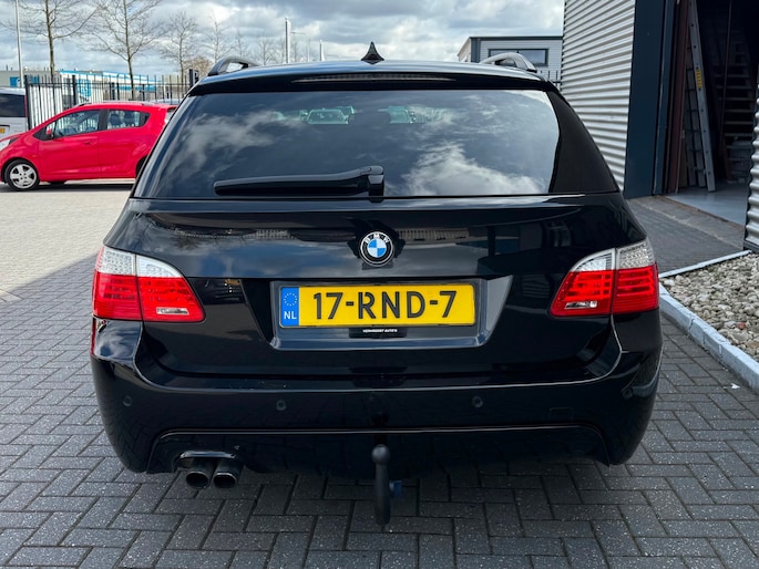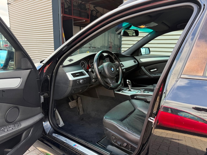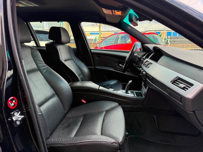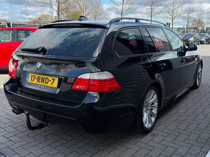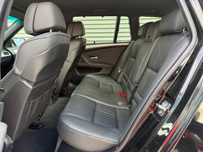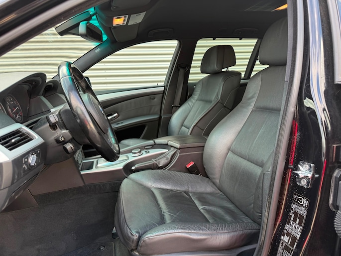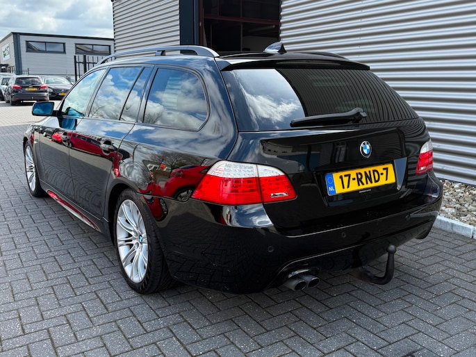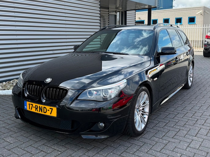 Deze BMW 5-serie Touring komt uit 2007, is voorzien van een benzine-motor, heeft een maximum vermogen van 140 kW (190 PK) en een cilinderinhoud van 2497 cc.