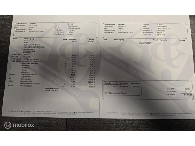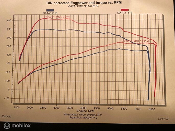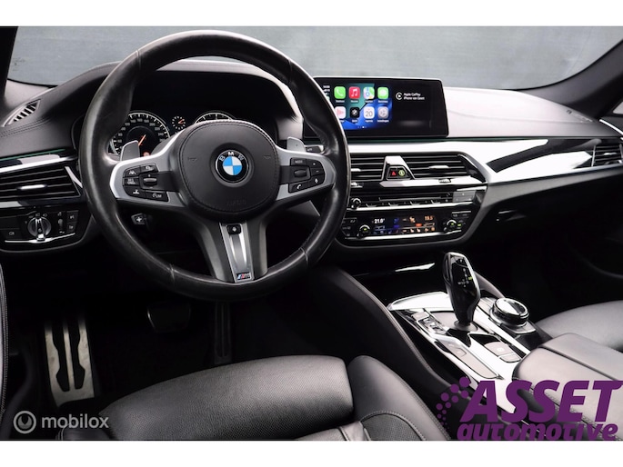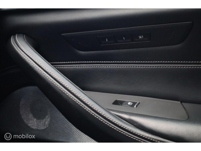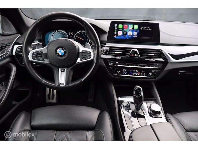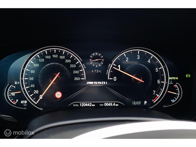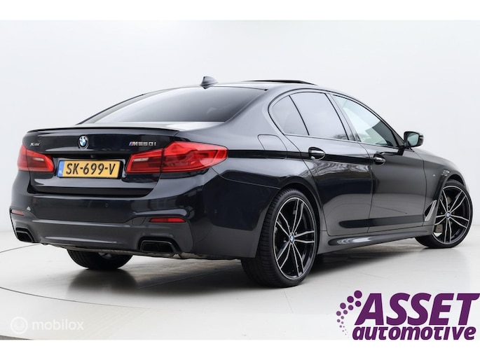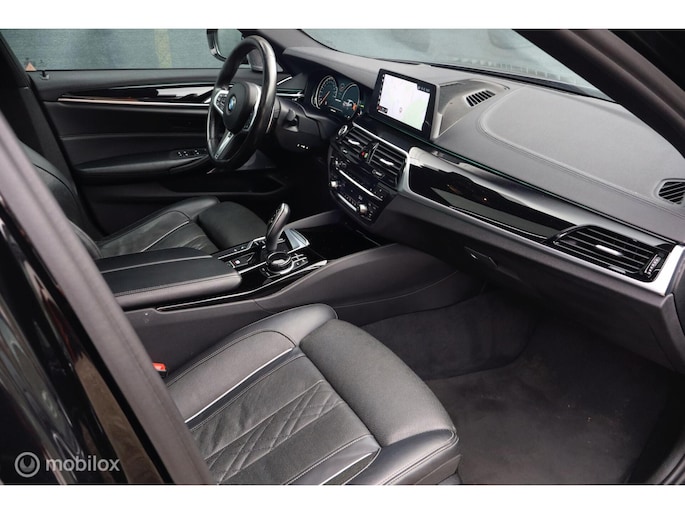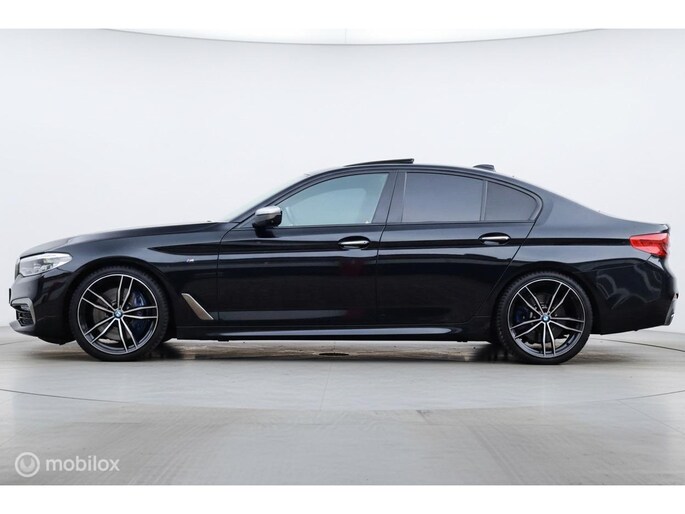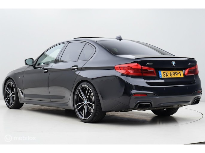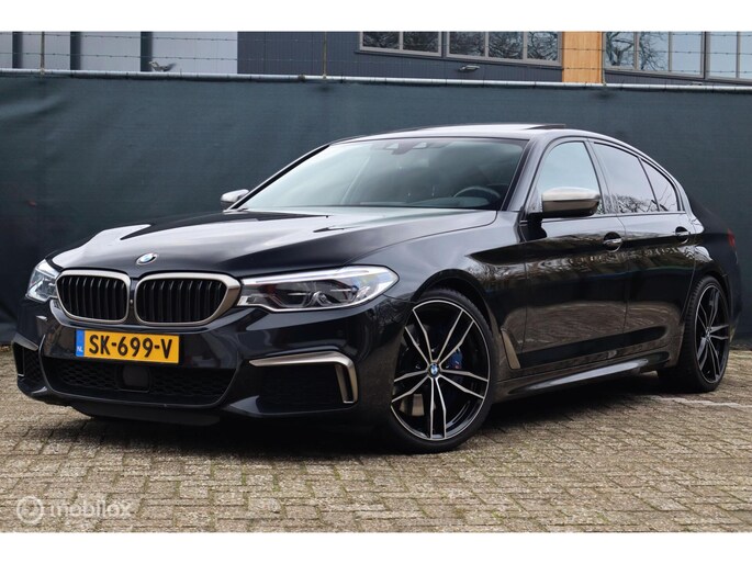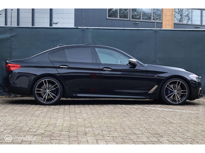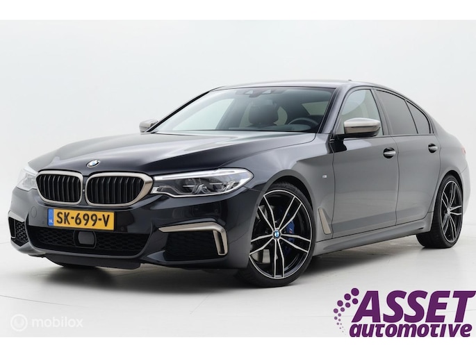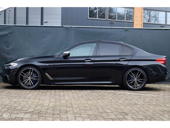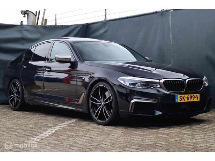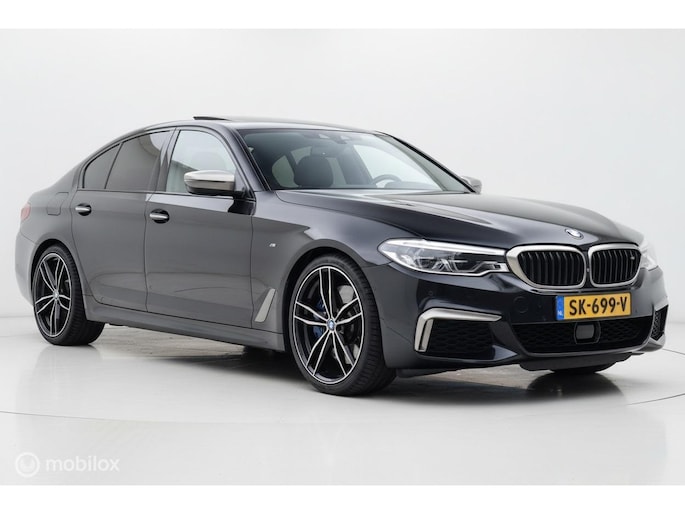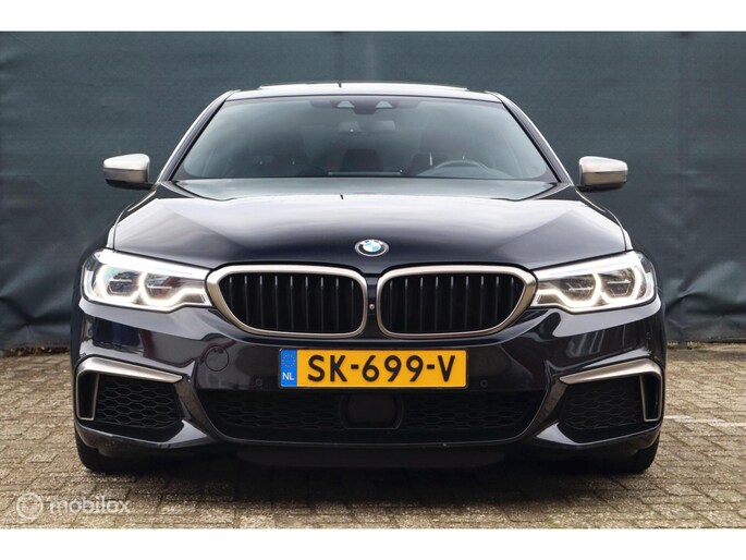 Met de 4.4 TwinTurbo V8 motor, 8-traps automaat en xDrive vierwielaandrijving is dit onder de M5 de dikste 5-serie. Deze auto is stage 1 getuned bij Mosselman Tuning en levert nu 544Pk en een huizenhoog koppel van 820 Nm. Hij is daarmee gestoord snel, nog altijd comfortabel, en elke sportauto heeft het nakijken! Duitse import, eerst bij de dealer onderhouden, en sinds 2021 door A&J Huizen. Hij is fraai samengesteld: Black Sapphire metallic met Shadowline en M-Sportpakket, met een interieur in Exclusive gestikt nappaleder en zwarte hemel. Ook de optielijst is om van te smullen, bijna het hele boekje zit erop: schuif/kanteldak, Bowers&Wilkins sound, sfeerverlichting, alle CoPilot autonome rijfuncties, alle Intelligent Safety systemen, meedraaiende 360 camera's, keyless-go, softclose portieren, stuurverwarming, stoelkoeling, stoelverwarming voor- en achterin, elektrisch verstelbare sportstoelen met geheugen, LED-koplampen, luchtvering met Adaptive Drive, Active Steering en 20 inch velgen. Het Navi Professional systeem met breedbeeld touchscreen en harddisk is voorzien van Apple Carplay/Android auto. Bij 118.759 km is groot uitgevoerd en zijn twee nieuwe turbo's geplaatst met een niet-misselijke rekening van ruim €7.700... Apk nieuw bij aflevering.
