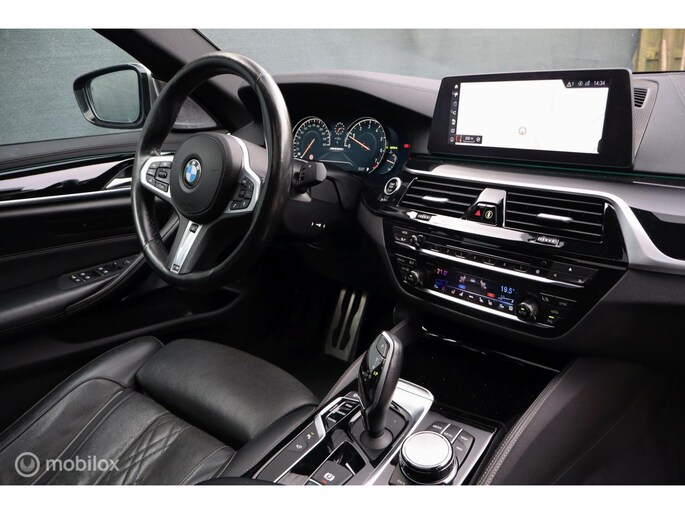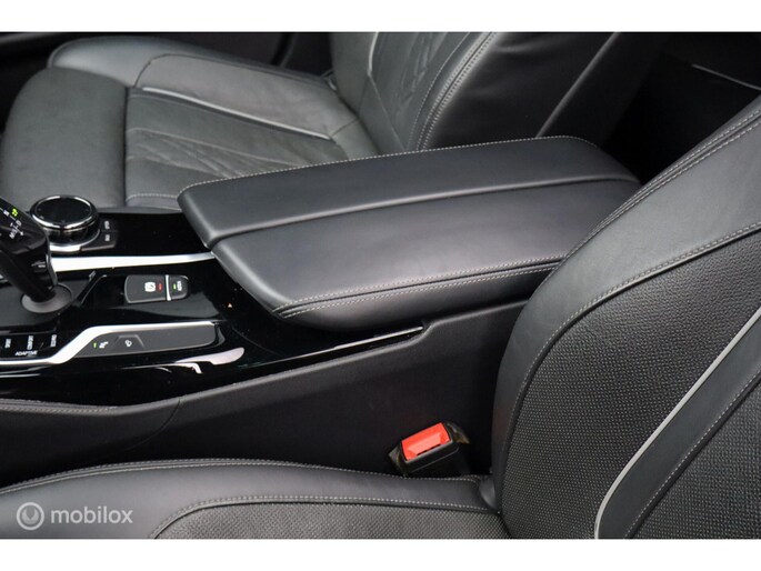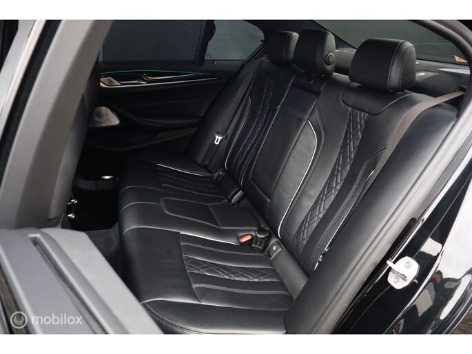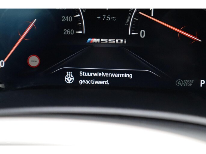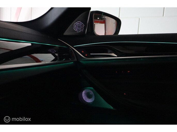 Aan de buitenkant springen de sportieve proporties direct in het oog, want het is tenslotte een M550i. Het is een prachtige auto om te zien en met nu 544 pk en 820 Nm is er genoeg kracht in huis om middelgrote steden een paar meter op te schuiven, 0-100 in 4,8 seconden. xDrive permanente vierwielaandrijving zorgt voor een perfecte wegligging. De 8-traps automaat van ZF heeft xHp tuning zodat hij met de motortuning overweg kan, hij schakelt perfect en kan ook via het stuur sequentieel schakelen. De auto is voorzien van leuke innovaties op het gebied van autonomous driving: naast active lane assist en intelligent cruise control met stop & go kan de auto ook zelfstandig van rijstrook wisselen en autonoom parkeren op de smart key. Liever zelf parkeren? Dat is een makkie met de meedraaiende parkeercamera die een top view kan geven, maar ook een perspectief alsof u achter de auto staat. Dit werkt waanzinnig goed en is echt een van de highlights van de G30 5-serie modellen. Natuurlijk heeft de auto ook intelligente veiligheidssystemen zoals een autonome noodrem, kruisverkeerdetectie, uitwijkassistent en grootlichtassistent. Het stille en gebalanceerde Adaptive Drive onderstel met variabele stuuroverbrenging Active Steering bezegelt de Freude am Fahren!
