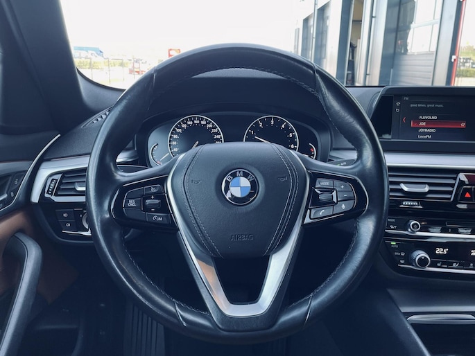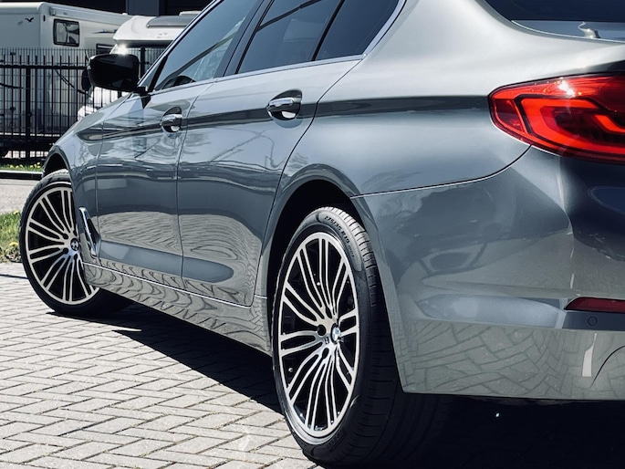 Deze BMW 5-serie staat garant voor vele veilige en comfortabele kilometers. Hoewel de benzinemotor van deze BMW zuinig is, levert hij niet in op prestaties. Als we het over extra cachet hebben, moeten we zeker het lederen interieur noemen. Deze BMW 5-serie heeft verwarmbare voorstoelen, voor zowel bestuurder als bijrijder. De comfortstoelen van deze BMW 5-serie staan bekend om hun goede zithouding. Een praktische extra is de elektrisch bedienbare achterklep die opent en sluit met een druk op de knop. U wordt in deze auto ook getrakteerd op 19 inch lichtmetalen velgen, LED koplampen, getint glas, in delen neerklapbare achterbank, verstelbare lendensteunen en snelheidsafhankelijke stuurbekrachtiging.