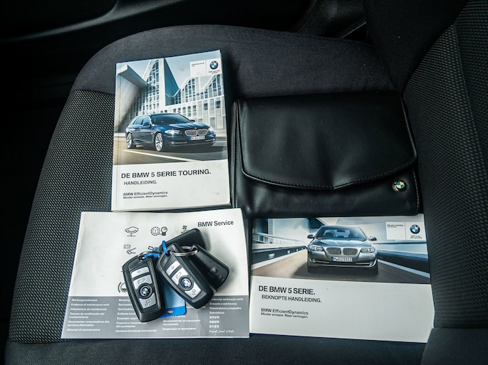 De 5-serie Touring is uitgerust met onder andere de volgende opties; 20" Inch lichtmetalen velgen, 6-versnellingen, Automatische verlichting, Aux, Bluetooth, Centrale deurvergrendeling met afstandsbediening, Climate control, Cruise control, Elektrische handrem, Elektrische ramen voor + achter, Elektrisch verstelbare stoel, Isofix, Keyless start, Luchtvering, Navigatie, Parkeersensoren voor + achter, Start-stop systeem, Stuurwiel-bediening, USB etc..