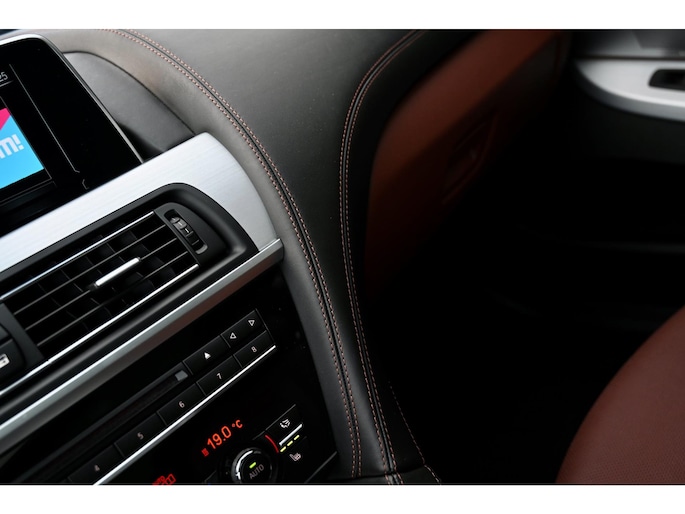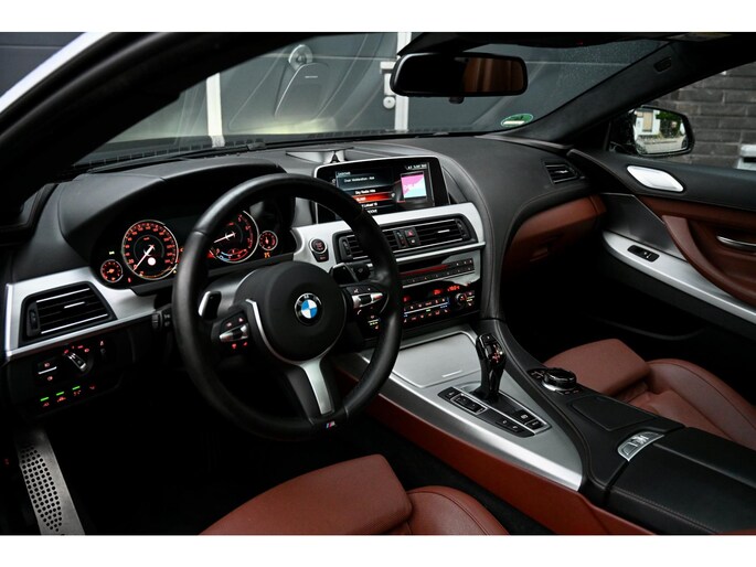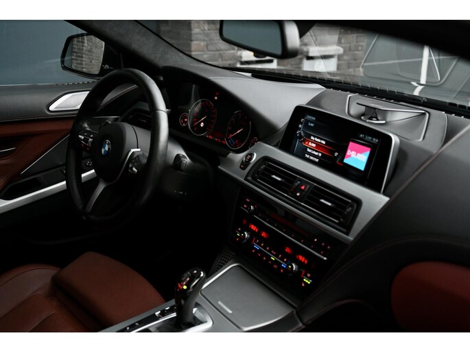 Deze 6-Serie is uitgevoerd in het stijlvolle Carbonschwarz Metallic, gecombineerd met Dakota Zimtbraun lederen bekleding en tal van BMW Individual-details zoals het met leder beklede dashboard, Alcantara hemelbekleding en keramische bedieningselementen. Het M-Sportpakket, Shadow Line hoogglans accenten en de 20 inch M-dubbelspaak (373) velgen maken het geheel tot een sportieve en elegante verschijning.