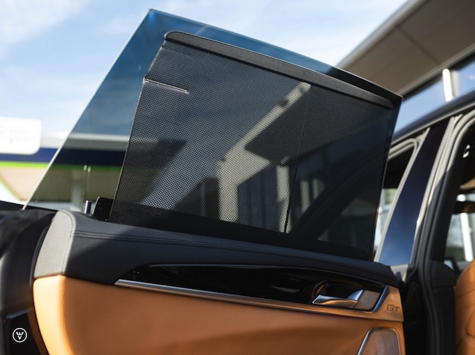 Dat ook de 6 GT zo een dubbel-rol als directie-limousine en gezinssportwagen met verve kan vervullen, mag blijken uit onderhavig exemplaar. Uitgevoerd met het M-sportpakket in dé M-kleur op een dergelijk model, Carbonzwart metallic – hier prachtig gecombineerd met een heerlijk Cognac leren interieur. Wanneer je verder kijkt naar opties als de luchtvering, het Bowers&Wilkins speakersysteem en bijvoorbeeld de elektrisch te verstellen achterbank, zal het je niet verbazen dat we hier weer te maken hebben met een ex-introductie-auto van de fabriek zelf.