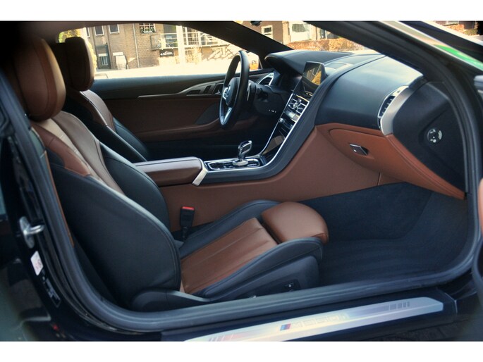 Zeldzaam mooi samengestelde BMW M850i in bijzonder mooie staat en een kilometerstand van slechts 45.000 km. Het Carbon-zwart aan de buitenzijde, de Individual Tartufo-zwarte leer, de chromen raamlijsten.. mooier wordt het niet. Daarnaast ook nog eens voorzien van de juiste opties; BMW Laserlight, Harman Kardon-audio, Driving Assistant etc.