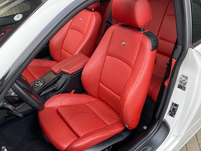 Van dit specifieke model zijn slechts 101 exemplaren wereldwijd, hiervan zijn er maar een hand vol afgeleverd in Alpina weiss. Wie deze kleur bestelde betaalde een flinke meerprijs, niet zonder reden want hij is zeer diep, rijk en chique. Met Alpina Dynamic velgen, Alpina Myrte interieurlijsten en een bloedrode interieur is deze auto onmiskenbaar Alpina. Prachtig is het contrast tussen exterieur en interieur. Onze persoonlijke favoriet.