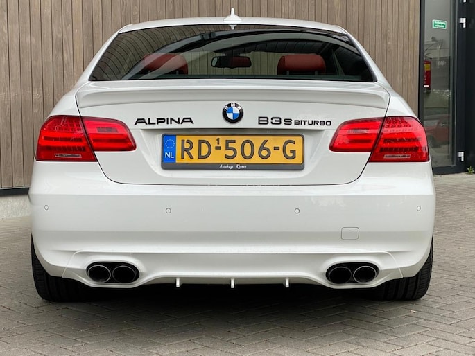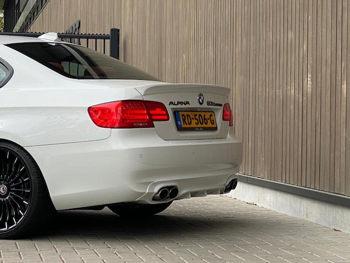 De S versie is enkel als facelift 3-serie geleverd en de coupé en cabrio beschikken dan over een andere voorbumper en achterbumper. De in de achterbumper geïntegreerde uitlaten en agressievere voorbumper geven de auto een ongekend gaaf uiterlijk – helemaal af! Tevens zijn de koplampen en achterlichten moderner en is het navigatie systeem nog extreem goed bij de les. Deze Alpina is compleet zonder Alpina striping, voor de liefhebber zijn deze te plaatsen. Dit model in deze bijzondere kleurstelling is gewoon Sheer Driving Passion. Fan-tas-tisch!