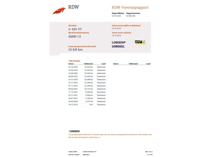 Kilometerstand gecontroleerd