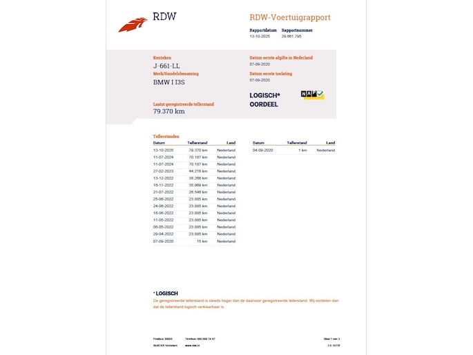 Kilometerstand gecontroleerd