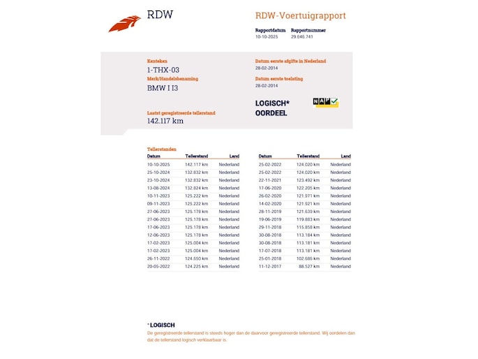 Kilometerstand gecontroleerd