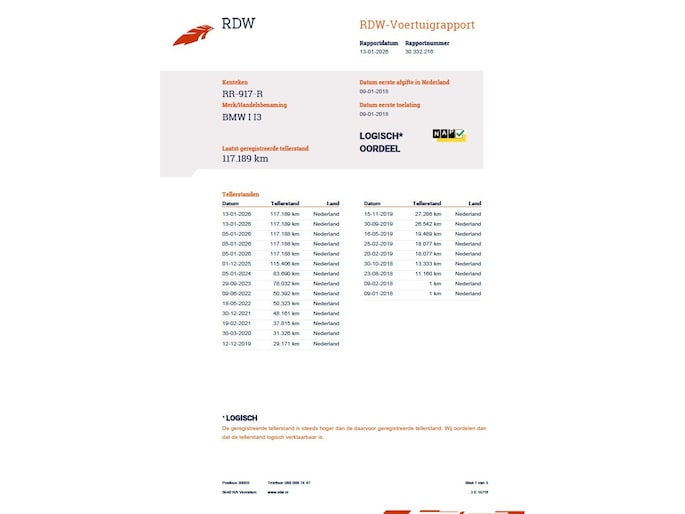 Kilometerstand gecontroleerd