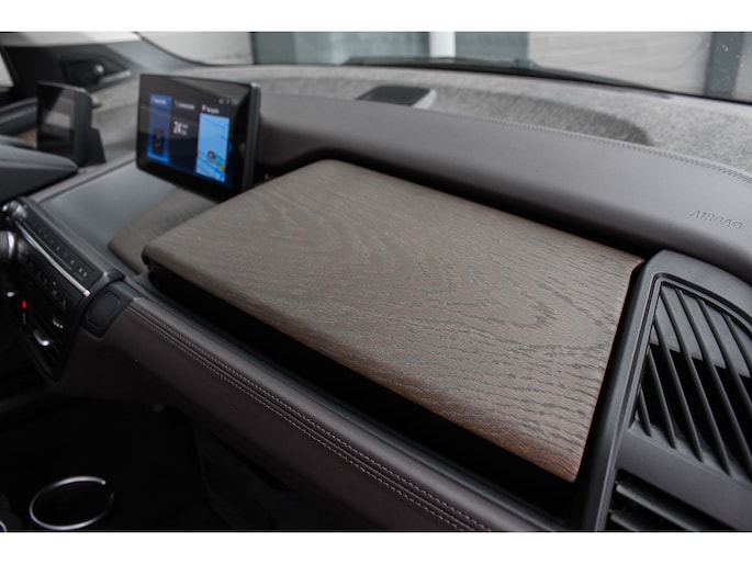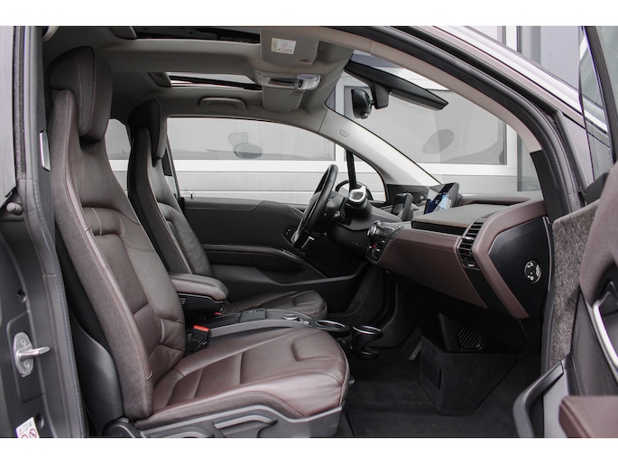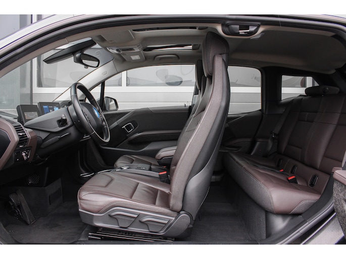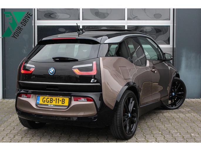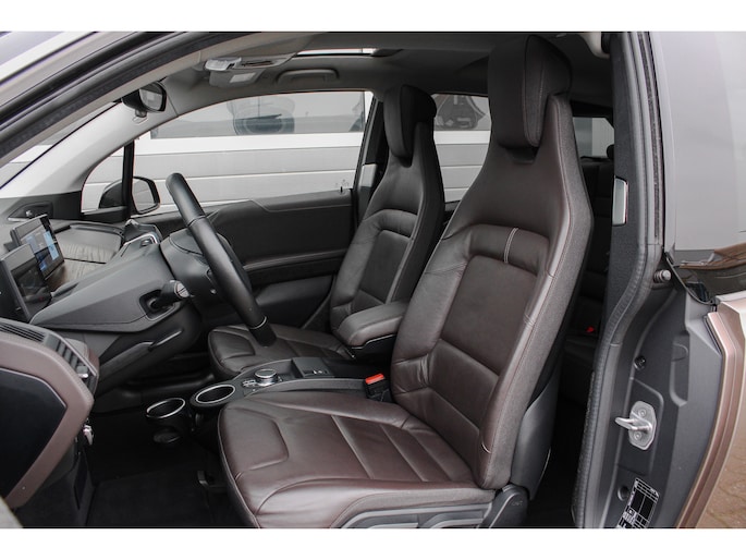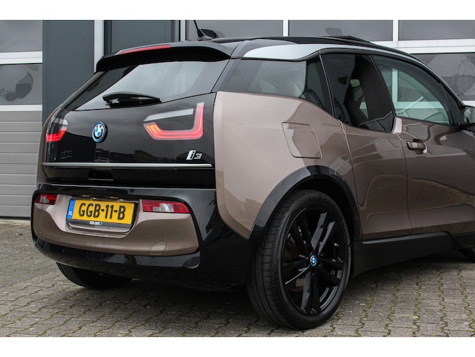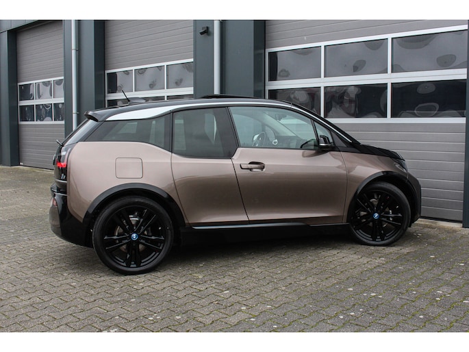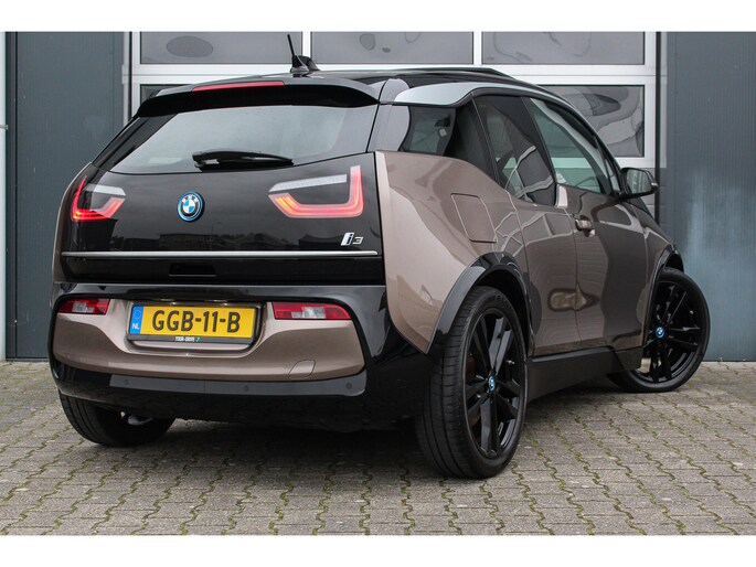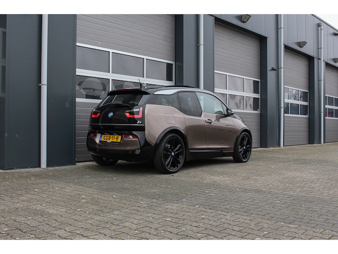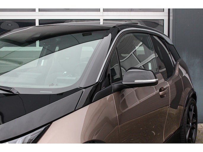 Bij de introductie van de BMW I3 werd hij door de pers geroemd voor zijn goede rijeigenschappen, premium uitstraling en het gebruik van fraaie duurzame materialen (die tevens gerecycled of goed recyclebaar zijn). Bij de productie is er gekozen voor niet alledaagse materialen zoals het ultra stijve koolstofvezel versterkte kunststof voor de carrosserie, wollen bekleding en interieur panelen van hennep. Zowel het in- als exterieur design is dan ook bijzonder modern en onderscheid zich van alles wat verder nog op de weg rijdt, het is zeker geen doorsnee auto en wordt nu de jaren verstrijken steeds mooier in onze ogen. Je krijgt dan ook bijna het gevoel in een studiemodel te rijden! Het design komt extra fraai tot zijn recht door de chique Jucaro Beige metallic exterieurkleur waarbij als contrastkleur onder andere de motorkap, het dak en de spiegels zijn uitgevoerd in Fluid Black, de exterieur accenten zijn daarbij uitgevoerd in Frozen Grey. Het interieur is uitgevoerd met fraaie lederen bekleding in "Vernasca/Dark Truffle" waarbij de interieurlijsten uitgevoerd zijn in "Dark Oak" matte.