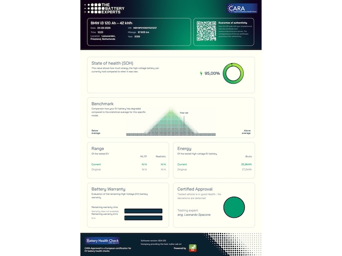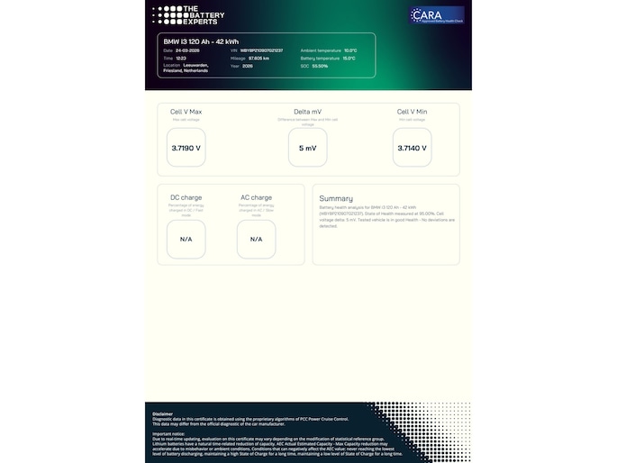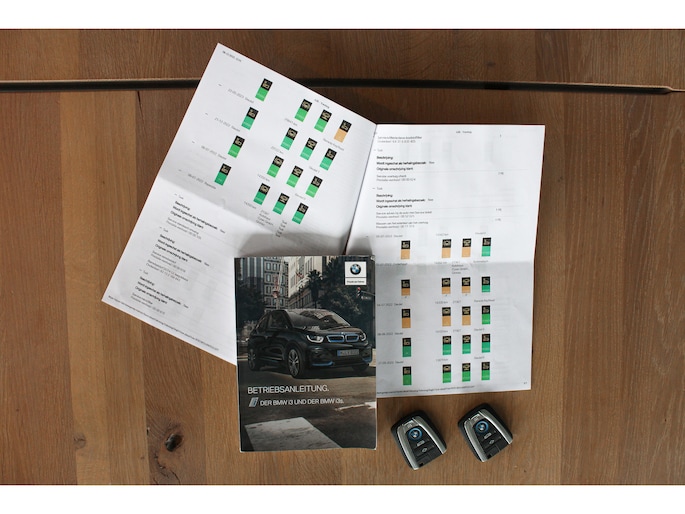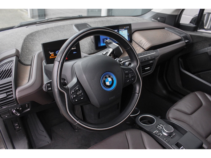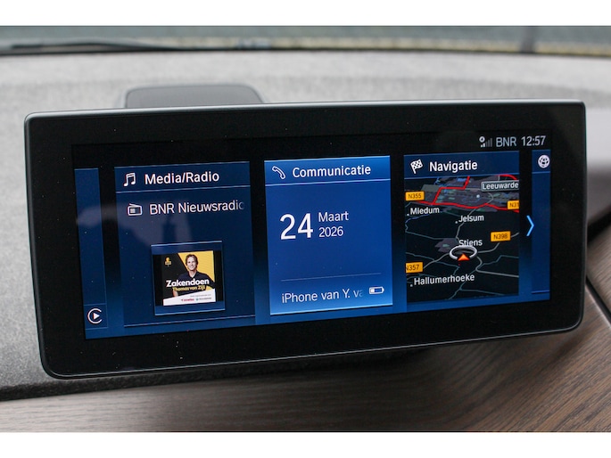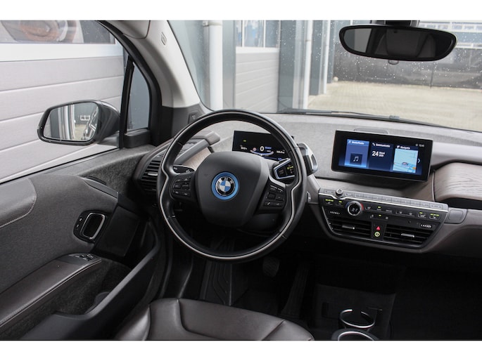 Deze uitermate complete en nette I3 Executive Edition werd medio 2020 nieuw geleverd door BMW München en is van het facelift model en tevens voorzien van de grootst leverbare accu (120Ah 42 kWh). De auto kwam medio 2024 naar Nederland met 59.284 kilometer en de eerste eigenaar is niet zuinig geweest met het selecteren van opties waardoor de auto dan ook voorzien is van nagenoeg alles wat in de prijslijst beschikbaar was. Denk onder andere aan: navigatiesysteem professional, adaptieve cruise control met file assistent en rijstrook assistentie, lederen bekleding, elektrisch te openen panoramadak, Harman Kardon premium audiosysteem, parkeersensoren aan de voor en achterzijde en fraaie 20 inch lichtmetalen BMW velgen. De BMW I3 wordt rijklaar geleverd met 12 maanden landelijke garantie via Autotrust, op het accupakket is fabrieksgarantie van toepassing tot acht jaar oud of 160.000 kilometer (wat als eerste bereikt wordt). De SOH van het accupakket is getest en deze heeft een score van 95% gehaald. De lader voor publieke laadpunten of wallbox, twee sleutels en de Nationale Autopas van de in Nederland verreden kilometers zijn bij de I3 aanwezig .