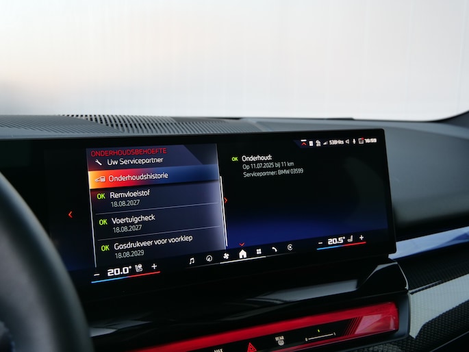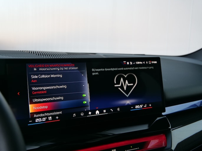 Het rijden met deze BMW wordt nog meer ontspannen dankzij de innovatieve technieken die onderweg over uw veiligheid waken. Jachtvliegers weten het al jaren: belangrijke info projecteer je in je zichtveld zodat je je hoofd niet meer hoeft te draaien. De hier aanwezige head-up display doet precies hetzelfde! Verkeersbord-detectie herkent verkeersborden en toont deze op het instrumentarium van de auto. Onbedoeld buiten de rijstrook raken wordt voorkomen door het Lane-keeping systeem. De auto is ook uitgerust met dodehoekdetectie, forward collision warning system, hill hold functie, vermoeidheidsherkenning, autonoom remsysteem en bandenspanningcontrolesysteem.