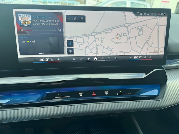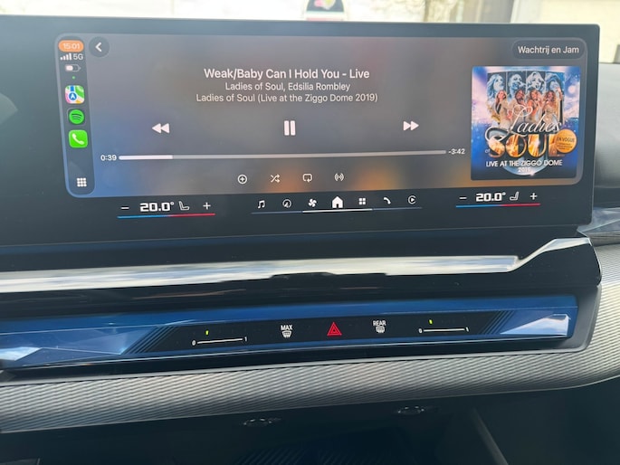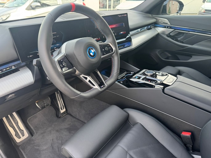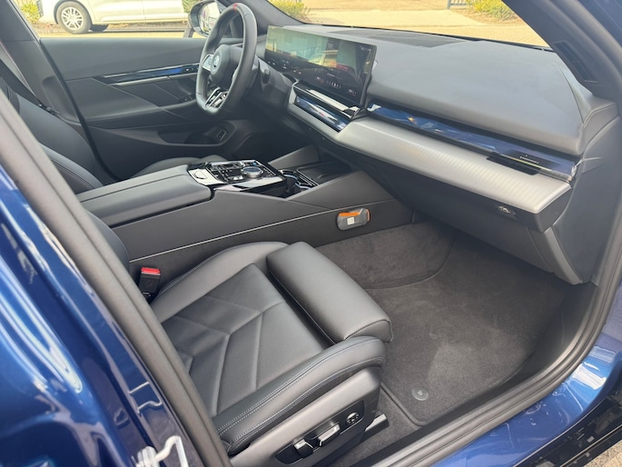 De acceleratie van de elektrische BMW i5 Touring is indrukwekkend. Dit exemplaar heeft 8414 kilometer gelopen, het bouwjaar is 2025. De batterijtechniek heeft de afgelopen jaren enorme vooruitgang geboekt, zodat u met deze auto op een volle acculading echt ver kunt komen. En als u de auto 's avonds aan de lader koppelt, is hij de volgende dag weer helemaal vol. Een krachtige motor geeft deze auto zijn sportieve prestaties. Gemakkelijk in- en uitladen? Geen enkel probleem met de elektrisch bedienbare achterklep. En ook het stijlvolle comfort is meegeleverd dankzij het lederen interieur. Winter... Eerst krabben, dan genieten van de stoelverwarming. Niet alleen u, maar ook uw passagiers zitten goed, dankzij de verwarmde achterbank. Bij de zeer complete uitrusting van deze auto behoren ook elektrisch verstelbare stuurkolom, 20 inch lichtmetalen velgen, LED koplampen, adaptief dempingsysteem, warmtewerend glas en LED-achterlichten.