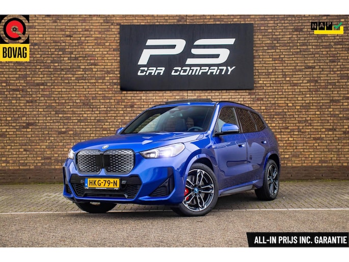 De auto is uitgevoerd in het stijlvolle Portimao Blue, een kleur die perfect past bij het moderne design van de iX1. In combinatie met de 19 inch lichtmetalen wielen krijgt de auto een krachtige en sportieve uitstraling. Het panoramadak maakt het exterieur helemaal af en geeft bovendien een ruimtelijk gevoel in het interieur.