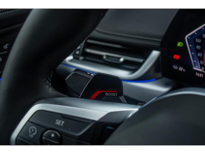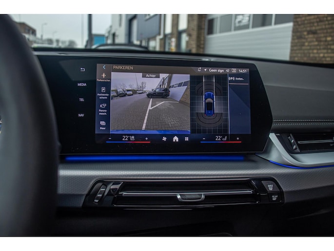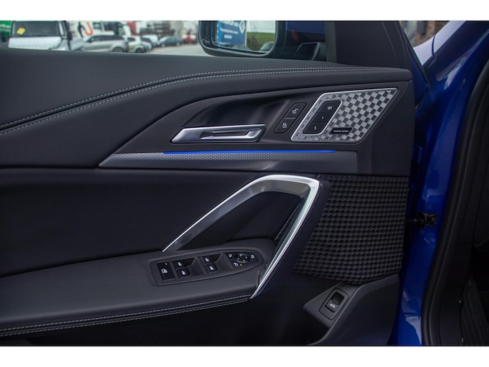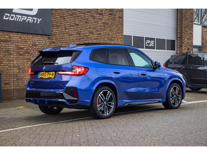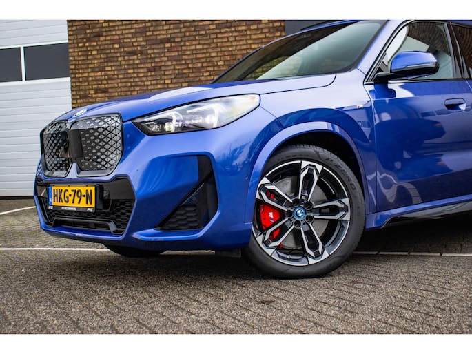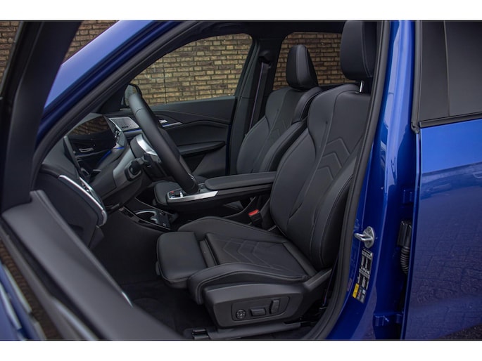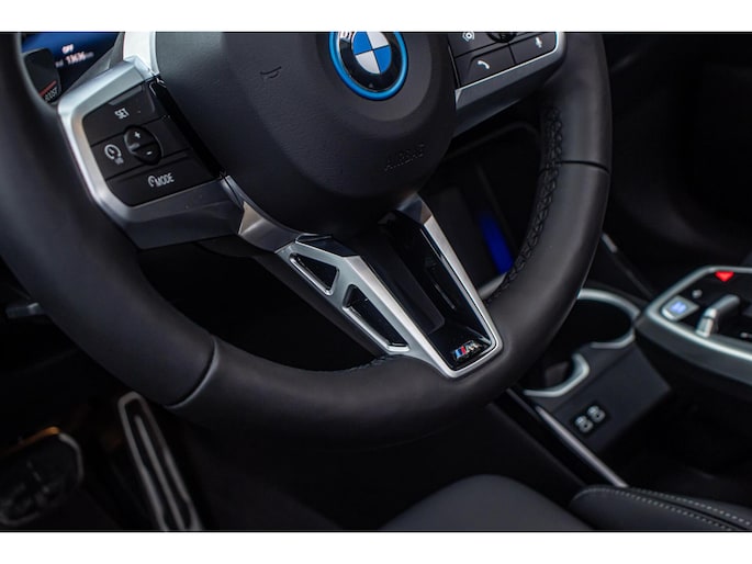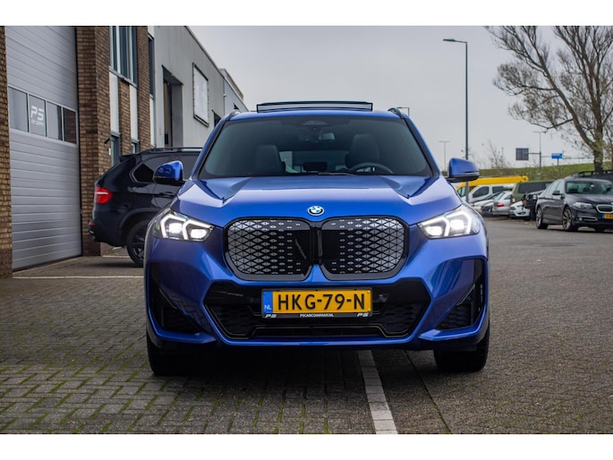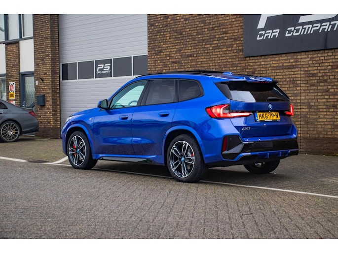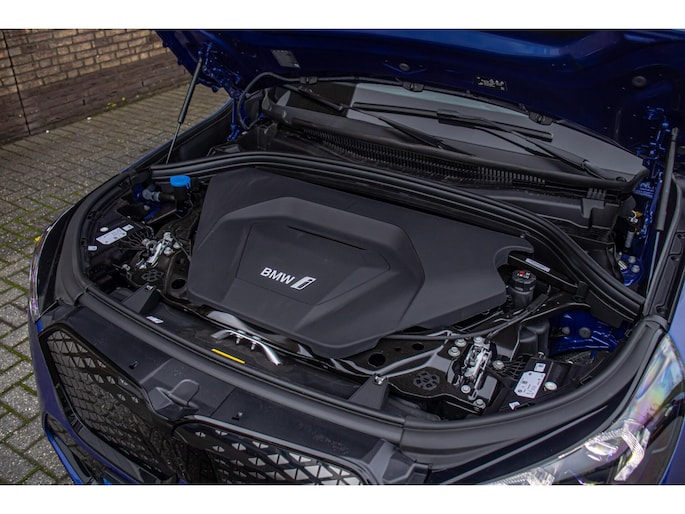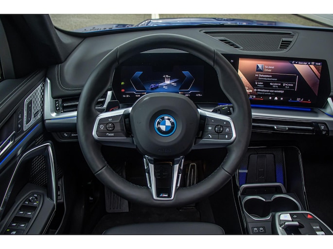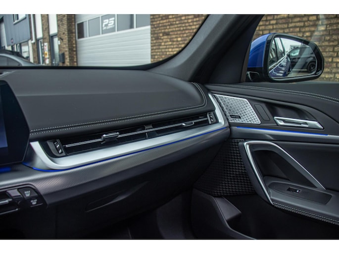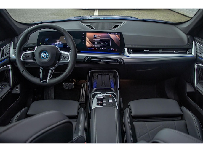 De auto is uitgevoerd in het stijlvolle Portimao Blue, een kleur die perfect past bij het moderne design van de iX1. In combinatie met de 19 inch lichtmetalen wielen krijgt de auto een krachtige en sportieve uitstraling. Het panoramadak maakt het exterieur helemaal af en geeft bovendien een ruimtelijk gevoel in het interieur.