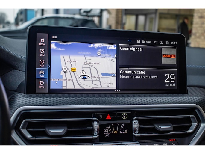 De auto is uitgevoerd in het stijlvolle Sophistograu, een kleur die perfect past bij het sportieve en tegelijk elegante design van de iX3. De M-Sport accenten geven de auto een krachtige uitstraling, terwijl de strakke lijnen en moderne details zorgen voor een tijdloos geheel. Dankzij het panoramadak oogt de auto extra ruim en luxe, zowel van buiten als van binnen.