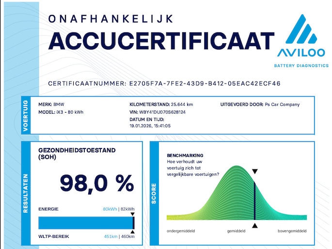 Deze BMW iX3 heeft een kilometerstand van slechts 25.648 km en is afkomstig van de eerste eigenaar. De hoogspanningsaccu verkeert in uitstekende staat met een state of health van 98%. BMW biedt daarnaast 8 jaar of 160.000 km garantie op de hoogspanningsaccu, wat zorgt voor langdurige zekerheid en vertrouwen in de techniek.