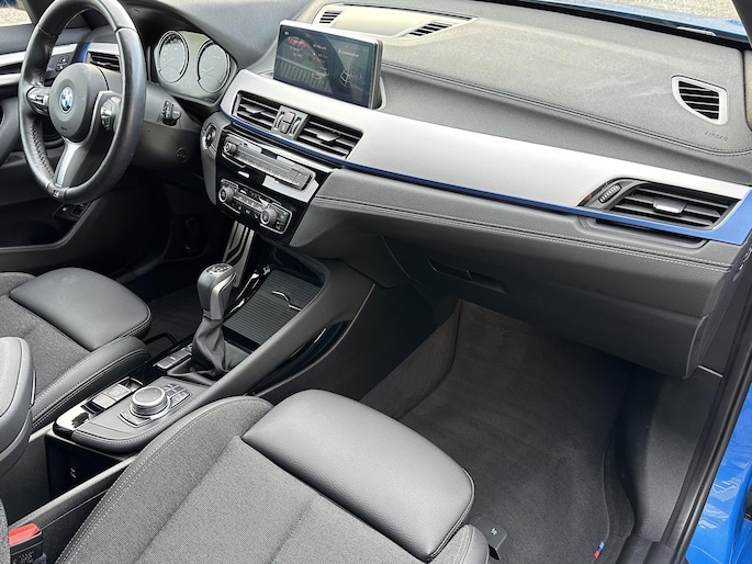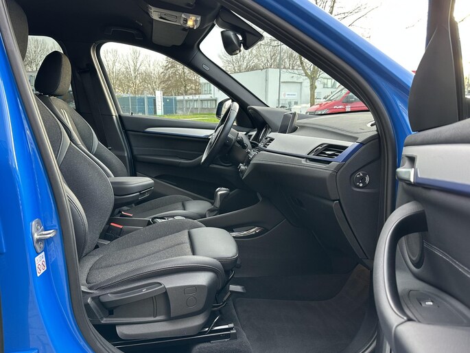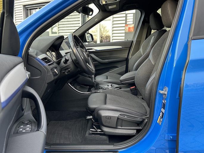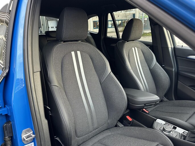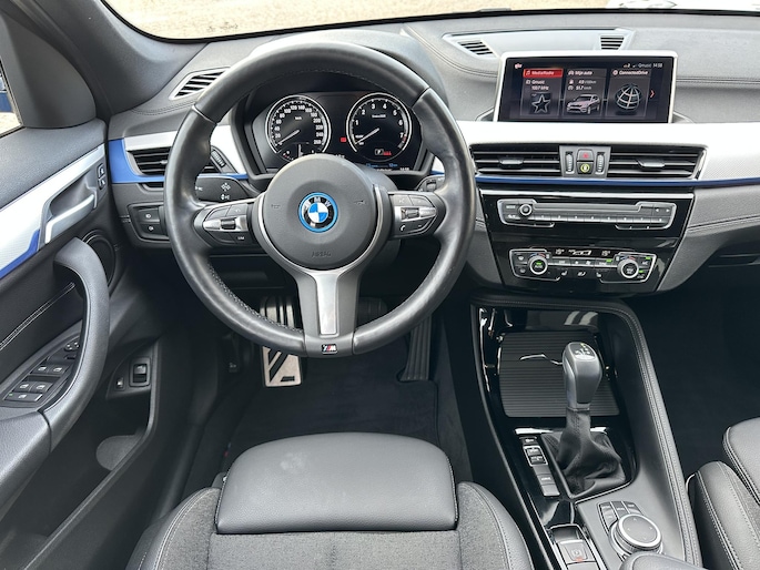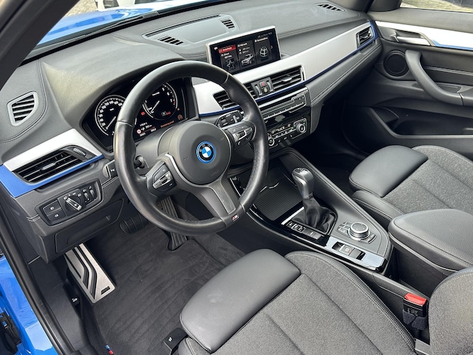 BMW X1 225e kom je niet snel tegen op het net in Masino Blauw metallic M-sport uitgevoerd en lekker zuinig door zijn hybride pakket, deze BMW X1 biedt een zee aan ruimte en is voorzien van sportstoelen, Lederen stuurwiel, Apple carplay, shadowline, privacy glass.