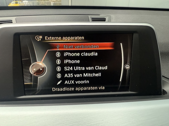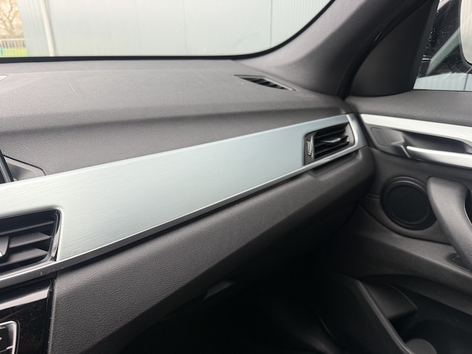 Zeer mooie, sportieve, ruime, praktische en complete BMW X1 1.8i 136pk Automaat Executive Sportline met o.a: Glacier zilvere metallic lak, kaartnavigatie Business, climate control airco, sportstoelen voor, stoelverwarming, bluetooth telefoon aansluiting, Led koplampen, dag rijverlichting en Led achterlichten, 4-elektrische ramen, centrale deurvergrendeling, aluminium inleg op dashboard, armsteun voor, multifunctioneel lederen sportstuurwiel, cruise control, zwarte dakrails, Aux en USB-aansluiting, in delen neerklapbare achterbank, Iso-fix aansluiting, getint glas, privacy glas achter, PDC voor en achter, afneembare trekhaak en originele 18-inch. lm-velgen Y-spaak styling. Zeer mooi en compleet van tweede eigenaar met slechts 139.217km !