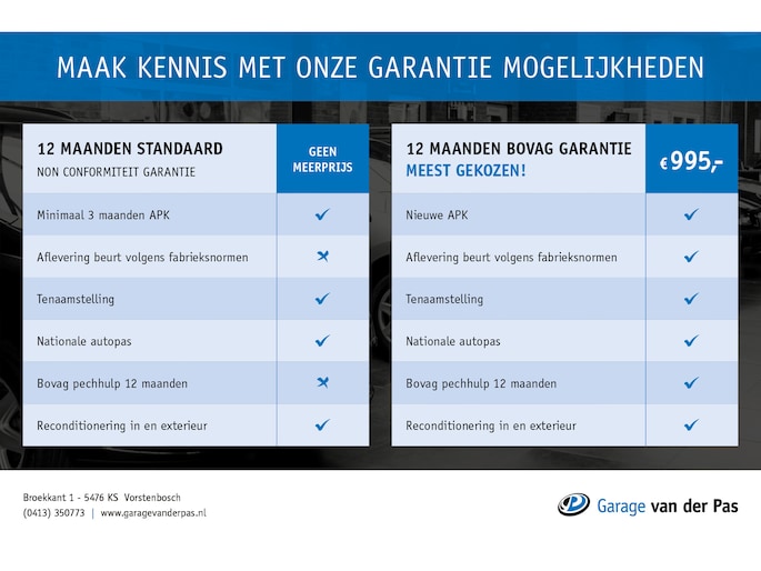 Optioneel afleverpakket (€ 995): Bovag Garantie