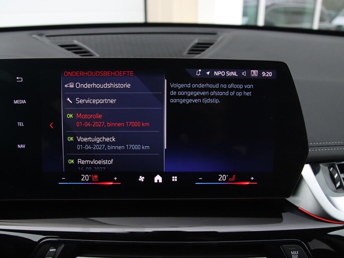 Met het digitale dashboard kunt u de cockpit-interface naar uw voorkeur instellen. Strak inparkeren wordt een fluitje van een cent door de achteruitrijcamera. U weet altijd hoe de auto eraan toe is dankzij Connected Services. Ook handig voor de garage en de wegenwacht. Even de app uitlezen en klaar! De kans op een aanrijding met tegemoetkomend verkeer wordt geminimaliseerd door de ingebouwde kruisend verkeer detectie. Aan boord van deze BMW X1 is een achteropkomend verkeer waarschuwing voor extra veiligheid. De BMW is standaard voorzien van: dashboard met spraakbediening, full map navigatiesysteem, WIFI-hotspot, automatische airconditioning, DAB ontvangst en regensensor.