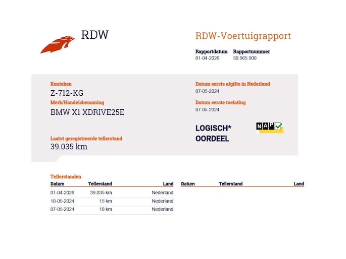 Kilometerstand gecontroleerd