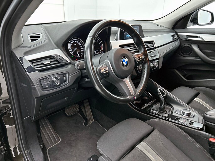 Mocht zich een probleem voordoen, dan krijgt u via remote services op uw smartphone te zien wat er precies aan de hand is, waar u ook bent. Tijdens de rit bedient u het audiosysteem en het full map navigatiesysteem met de knoppen op het stuur of met uw stem. De automatische airconditioning zorgt voor een prettige binnentemperatuur. Een plekje vinden in de binnenstad is één, inparkeren is twee. Voor dat laatste heeft deze BMW X2 prima parkeersensoren die u een handje helpen. Om de veiligheid onderweg te verhogen, heeft deze BMW zowel een automatisch inschakelbare verlichting als een regensensor aan boord, zodat hij zelf de verlichting en de ruitenwissers kan inschakelen. Deze auto is voorzien van cruise control, sportstuurwiel, isofix-aansluiting en boordcomputer.