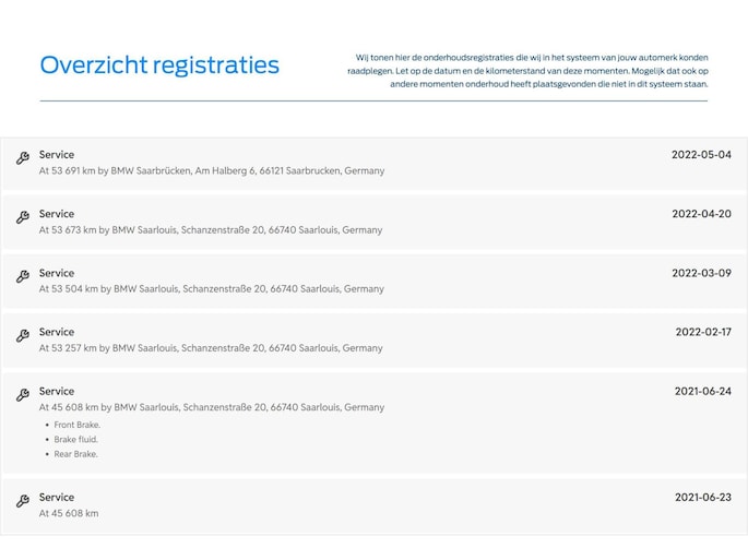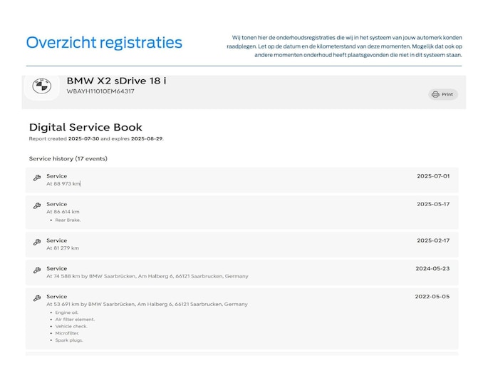 - Onderhoudshistorie aanwezig: Ja