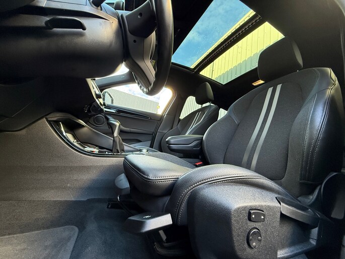 Deze auto nodigt u uit om plaats te nemen achter het sportstuur en onmiddellijk de weg op te gaan. De aandrijving van deze BMW wordt verzorgd door een driecilinder motor en een automatische transmissie. Het lederen interieur zorgt voor een klasse uitstraling. Koude start? Niet met de verwarmbare voorstoelen! De sportstoelen zorgen ervoor dat u goed en comfortabel zit, ook als het gas erop gaat. Fun en functie wordt samengebracht in het elektrisch bedienbare glazen panoramadak. Een handige voorziening op deze auto is de elektrische achterklep die u op afstand kunt openen. Opwarmen in koude dagen? Pak het verwarmd stuurwiel met beide handen aan! Bij de rijke uitrusting horen ook 17 inch lichtmetalen velgen, LED koplampen, sportonderstel, halflederen bekleding, warmtewerend glas en LED-achterlichten.