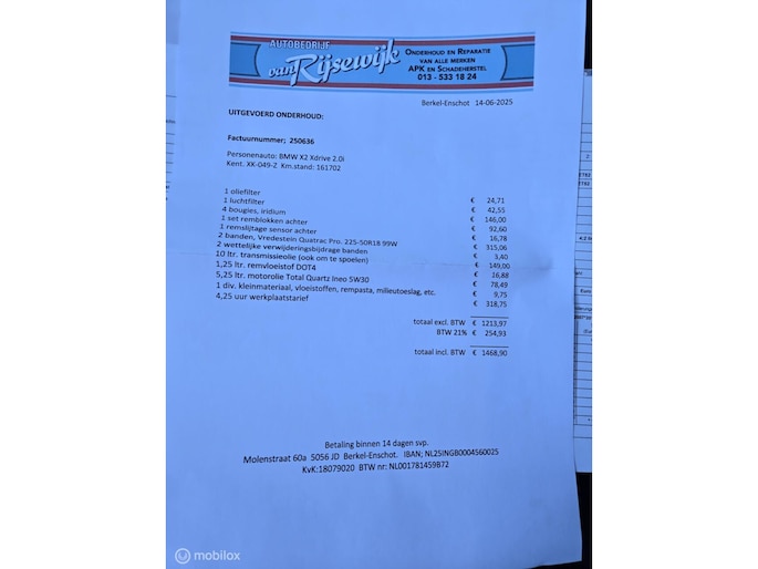 - Onderhoudshistorie aanwezig: Ja