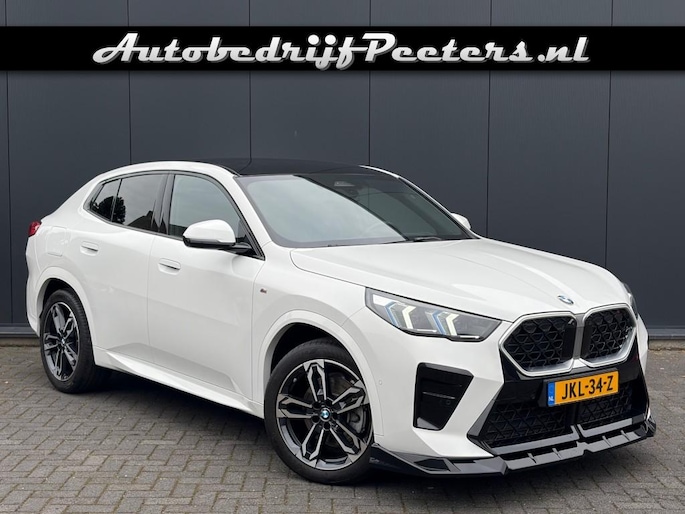 Keurige BMW X2 sDrive20i M Sport Shadow Automaat voorzien van zwart lederen sportstoelen incl. stoelverwarming, panoramadak, head up display, Harman Kardon Surround sound, adaptieve LED verlichting, 360ºCamera, Iconic Glow grill, sfeerverlichting, draadloos telefoon lader, M Sportpakket, M Sportstuur, M adaptief onderstel, Luxury dashboard, comforttoegang, Live cockpit professional, privacy glas en M Sportvelgen.