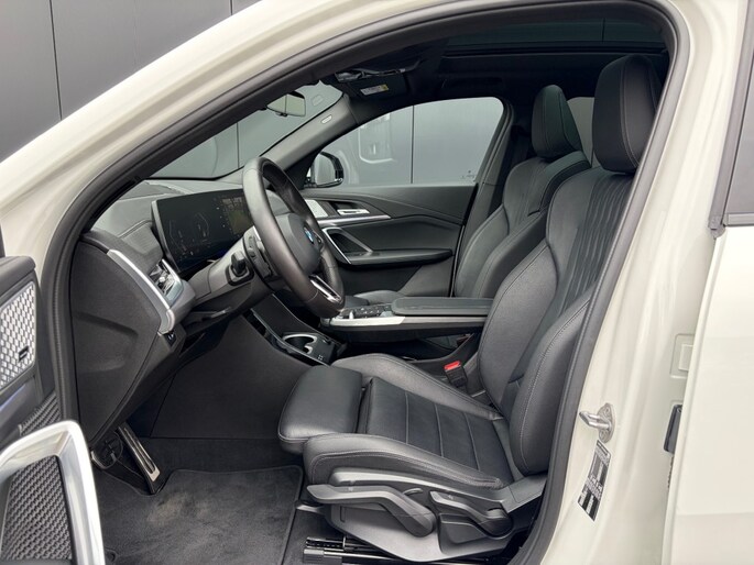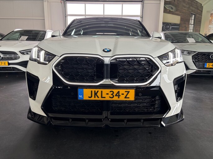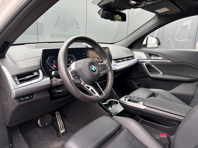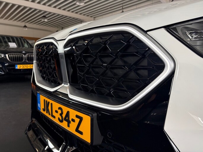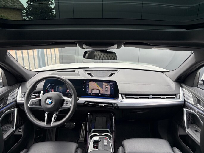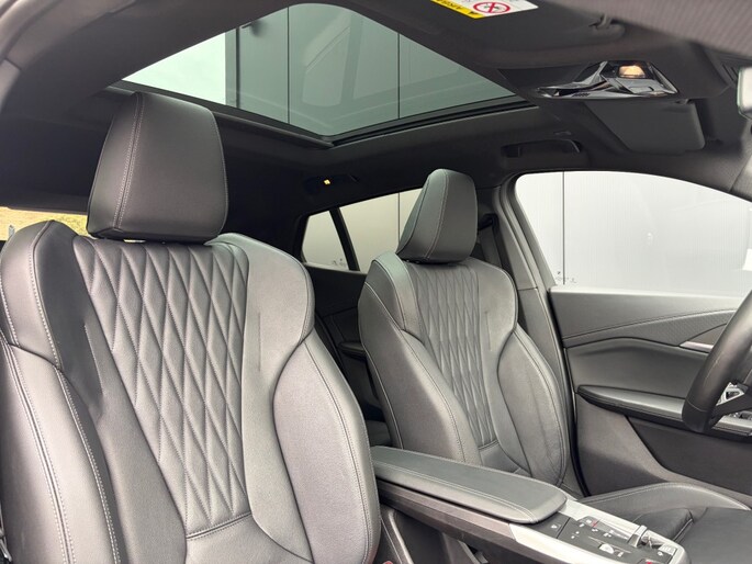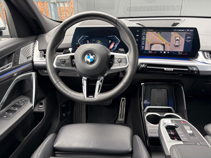 Keurige BMW X2 sDrive20i M Sport Shadow Automaat voorzien van zwart lederen sportstoelen incl. stoelverwarming, panoramadak, head up display, Harman Kardon Surround sound, adaptieve LED verlichting, 360ºCamera, Iconic Glow grill, sfeerverlichting, draadloos telefoon lader, M Sportpakket, M Sportstuur, M adaptief onderstel, Luxury dashboard, comforttoegang, Live cockpit professional, privacy glas en M Sportvelgen.