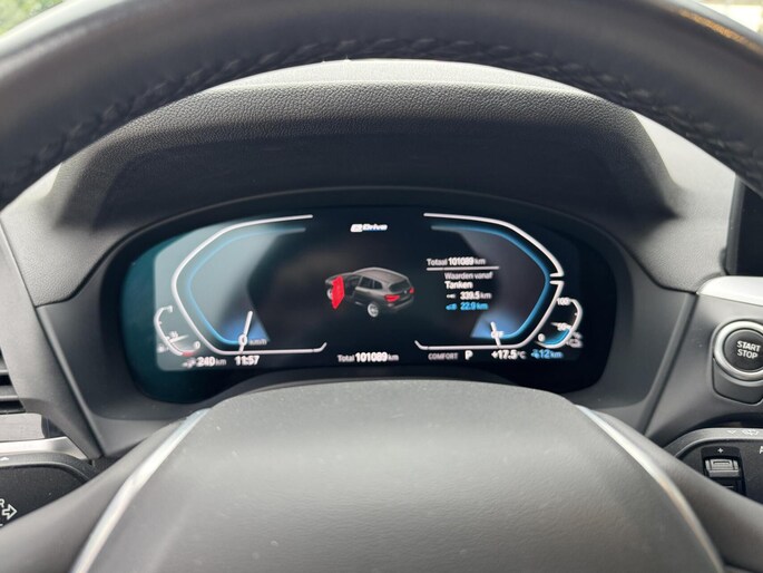 Ervaar de wonderen van de digitale mobiliteitswereld waarbij alles wat u wenst op het digitale dashboard verschijnt. Kom maar, kom maar, kom maar... ho! Prettig hoor, zo'n achteruitrijcamera. Hoe is het met de banden, de accu en andere onderdelen? Connected Services maakt het inzichtelijk, 24/7 via de app. Het is veiliger om altijd uw ogen op de weg te houden en uw handen aan het stuur; daarom is dit voertuig uitgerust met een audio-installatiesysteem met DAB-ontvangst en een navigatiesysteem met harde schijf dat kan worden bediend via het stuurwiel of spraakbediening. De kans op een kop-staart botsing wordt sterk gereduceerd door het systeem van achteropkomend verkeer waarschuwing. Ook is de BMW uitgerust met: automatische airconditioning, regensensor, cruise control, sportstuurwiel, dvd-systeem en automatisch dimmende binnenspiegel.