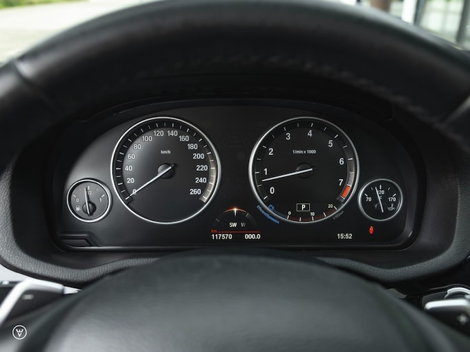 Wat leverde die beste man daar in? Een zescilinder BMW in zeer smaakvolle uiterlijke configuratie om te beginnen. Met Saphierzwart metallic lak over Mokka-kleurig leer met hoogglans zwarte afwerking buitenom en de mooiste Fineline antraciet interieur sierlijst als verbindend element een genot voor het oog, passend afgerond met de populaire Style 622M in tweekleurige afwerking.