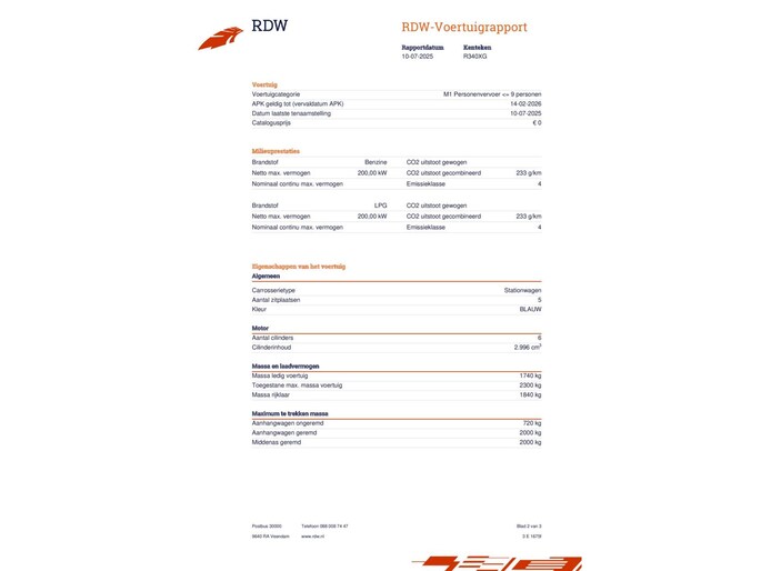 - Brandstofsoort: LPG G3 / Benzine