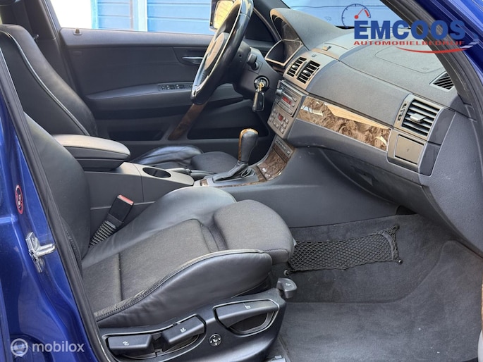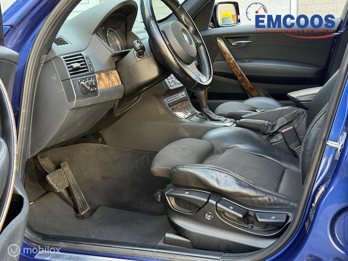 Binnenin biedt de X3 plaats aan vijf personen en is hij voorzien van halflederen bekleding die comfort en luxe combineert. Zowel de voorstoelen als het stuurwiel zijn prettig gepositioneerd, wat zorgt voor een ergonomische rijervaring. De voorstoelen zijn bovendien uitgerust met stoelverwarming, wat extra comfort biedt tijdens koude dagen.