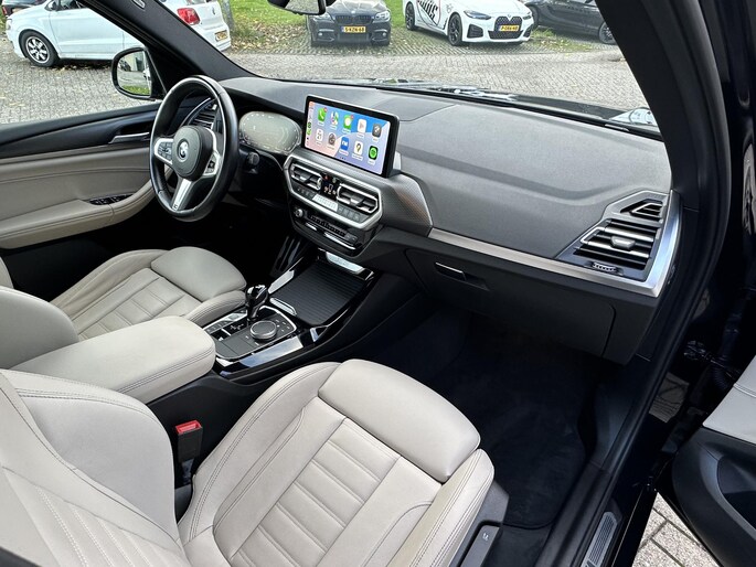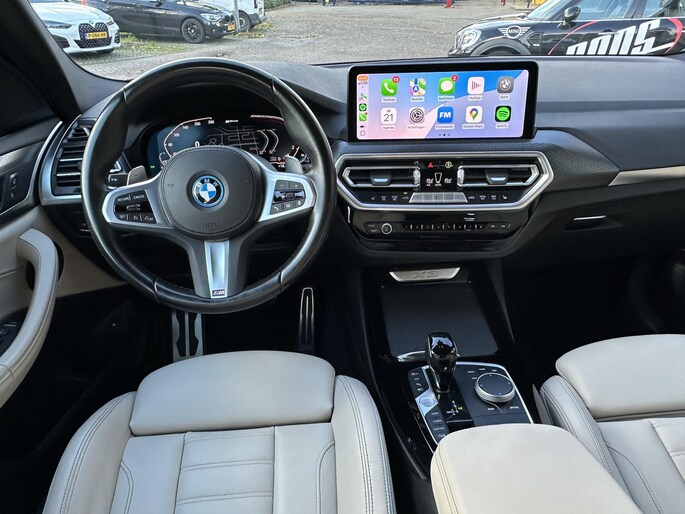 Roos BMW & MINI specialist bied u aan deze prachtige BMW X3 30e in Carbonzwart metallic, met prachtig Oyster lederen interieur en zwarte hemel. Hij komt uit 04-2023 en heeft 184pk gecombineerd met een 55kw elektrisch vermogen. Al het onderhoud is keurig uitgevoerd en digitaal geregistreerd.