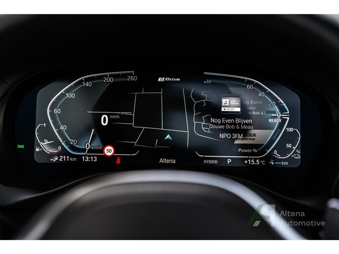 Binnenin gaat het feest rustig verder. M Sport stoelen die je meteen omsluiten zodra je instapt, dat typische BMW-gevoel van stevigheid en luxe, en de elektrische aandrijflijn die stil wegrijdt alsof je ’m fluistert wat ’ie moet doen. Maar zodra je het gaspedaal dieper indrukt, laat de 30e meteen horen dat er óók nog een serieuze verbrandingsmotor klaarstaat. Dat samenspel maakt dit ding zo fijn: soepel als je rust wil, scherp als je zin hebt.