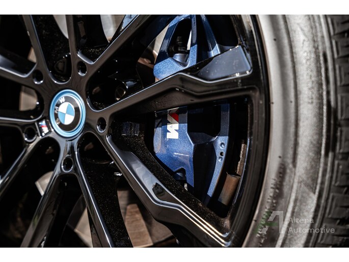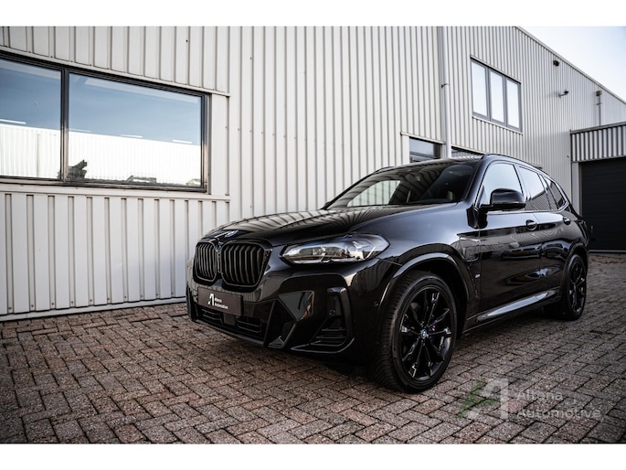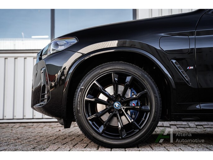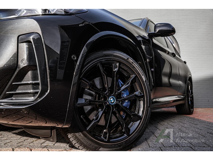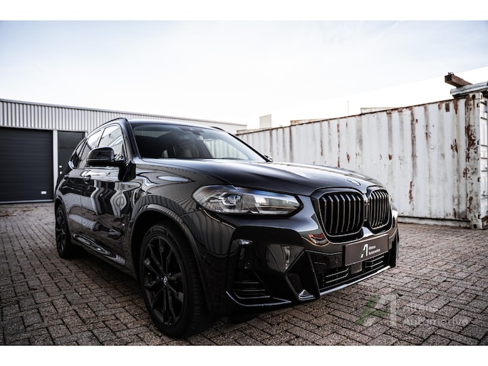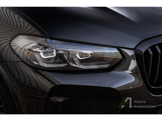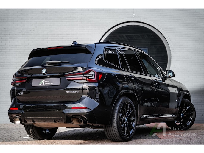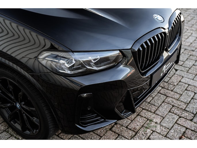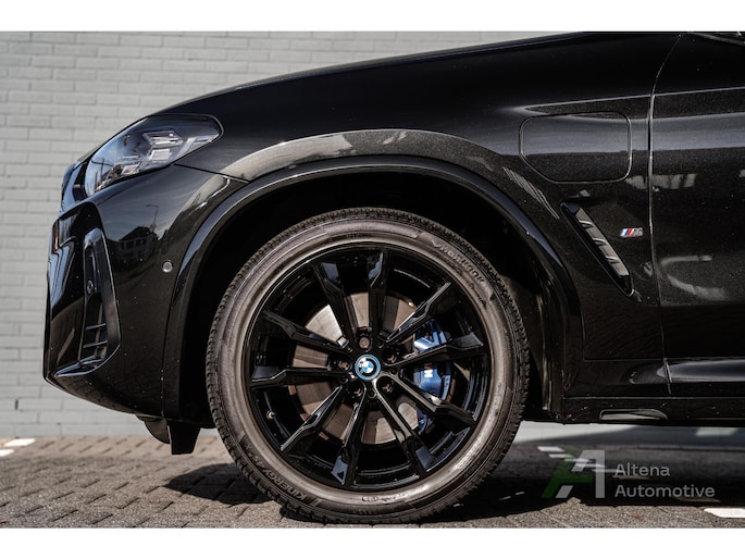 De BMW X3 30e die hier staat, is zo’n auto die je ziet en meteen denkt: ja hoor, dit klopt gewoon helemaal. Safierschwarz, diep en glanzend alsof ’ie net uit een nachtclub komt rollen. Alle accenten hoogglans zwart, waardoor het geheel strak, modern en net een tikje brutaal oogt. En op die zwarte wielen… ja, serieus, dat maakt ’m af. Dit is geen X3 die je toevallig koopt — deze kies je bewust.