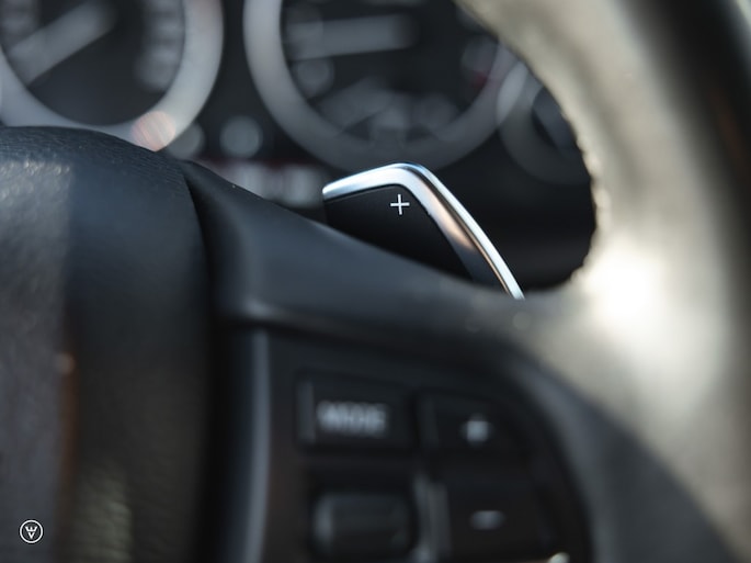 UITVOERING, HISTORIE, CONDITIE Wat een waanzinnig mooi en fijn samengestelde X3 is dit! Het eerste wat opvalt aan deze facelift is letterlijk en figuurlijk natuurlijk de prachtige lak in Tiefseeblauw metallic, een helaas zeldzame maar oh zo fraaie tint op deze tweede generatie X3. In dit geval lekker sportief gecombineerd met Sportstoelen voorzien van zwart leer, de mooiste 19inch breedset wielen in Style 309 – de zwarte hemelbekleding, getint glas vanaf de B-stijl en het lekker dikke M-sportstuurwiel voorzien van schakelflippers.