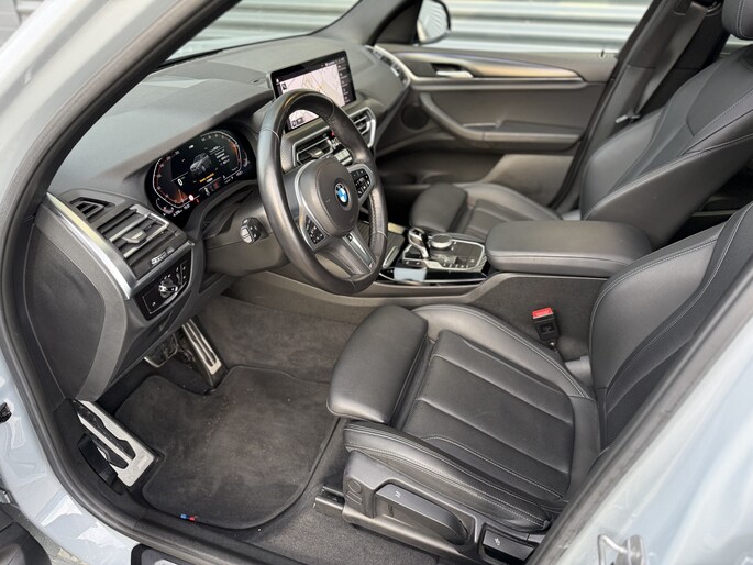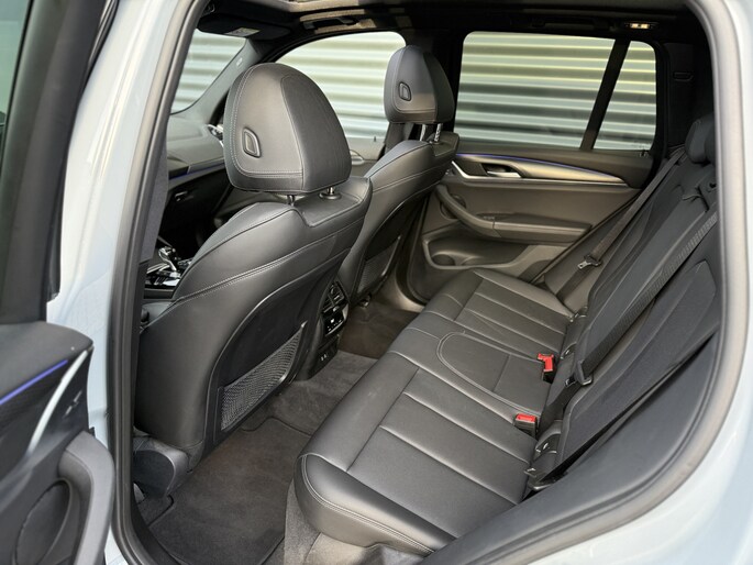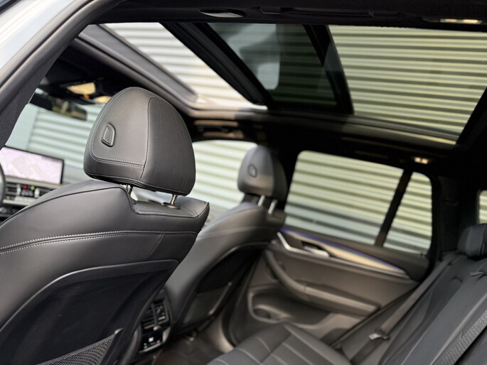 Schitterende BMW X3 xDrive 20i M-Sport Shadow in Brooklyn Grau met hoogglans zwarte 20inch licht metalen velgen. De BWM is voorzien van veel mooie opties zoals: Panorama dak, elektrisch wegklapbare trekhaak (TREKGEWICHT 2000KG), achteruitrijcamera, navigatie, Apple Carplay/Android Auto, Audio Hifi Systeem, lederen bekleding, LED koplampen, LED sfeer interieur verlichting, stoel en stuur verwarming, keyless entry, cruise control, etc..