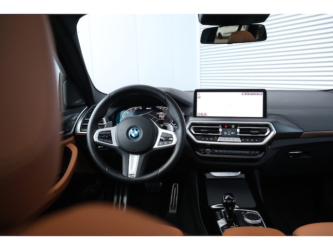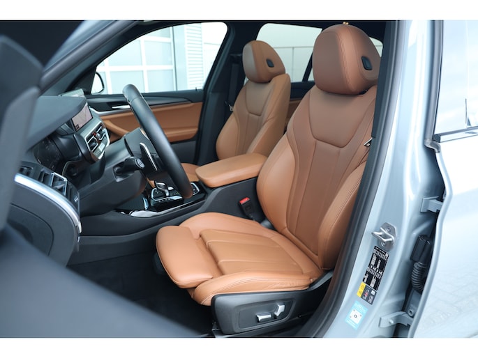 Bijzonder fraaie en uiterste complete BMW X3 30e 292 M-Sport plug in hybride met een gecontroleerde kilometerstand van slechts 35.000 kilometer van modeljaar 2023, geleverd op 12-2022 in de schitterende kleur Brooklyn grijs met een zeer chique cognac lederen interieur metallic voorzien van shadowline en vele andere zwarte accenten maakt dit een prachtige verschijning, de auto is tevens zeer compleet in de opties waaronder: groot glazen panoramadak, schuif/kanteldak, trekhaak elektrisch weg zwenkbaar, led koplampen, led achterlichten, parkeersensoren voor en achter, 360 rondom zicht camera, zwarte grille, zwarte performance achterklep spoiler, zwarte performance frontlip, zwarte spiegelkappen, vol lederen sportstoelen, elektrisch verstelbare voorstoelen, memory functie op bestuurderstoel, stoelverwarming, stuurverwarming, head up display, live cockpit professional, donkerglas, keyless go + entry, isofix, 20inch glans zwarte wielen, blow by heizer, groot licht assistent, elektrisch verstelbare + inklapbare buitenspiegels, verlichting onder handgrepen, instap verlichting, sfeerverlichting interieur, driving assistent, active protection, akoestisch glas, parkeerassistent plus, radio dab, connected drive services, Harman kardon audiosysteem, carplay, etc.