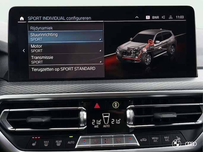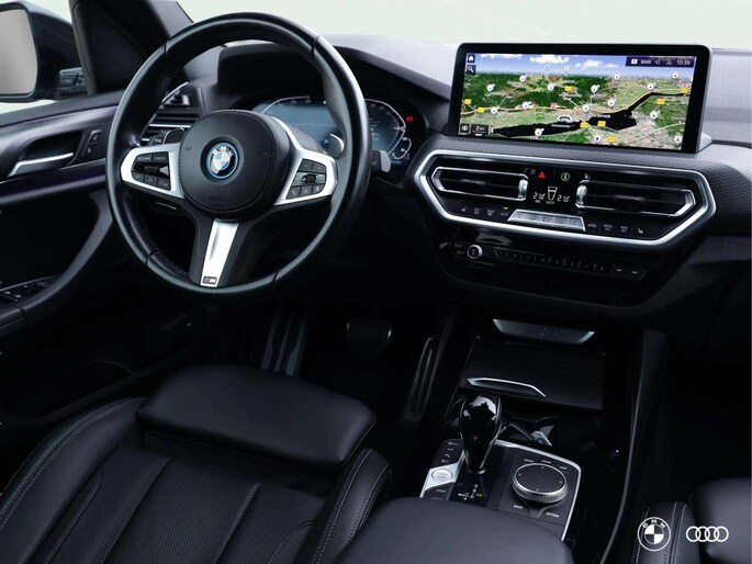 Deze fraaie BMW X3 M Sport beschikt over een aantal mooie opties zoals het M Sportpakket, Leren bekleding, het BMW Hifi audiosysteem, een groot navischerm en de mooie jetblack 20" wielen.
