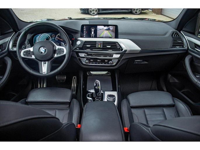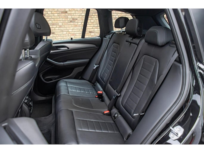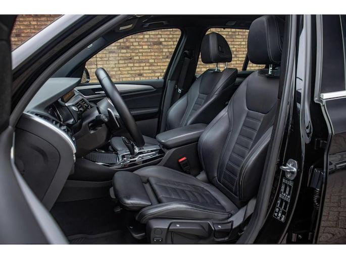 De auto is uitgevoerd in zwart en staat op indrukwekkende 21 inch BMW Individual velgen, wat zorgt voor een krachtige en onderscheidende uitstraling. De M-Sport details geven de X3 een dynamisch karakter, terwijl het panoramadak bijdraagt aan een luxe en open beleving. De elektrisch uitklapbare trekhaak maakt de auto daarnaast praktisch inzetbaar wanneer dat nodig is, zonder afbreuk te doen aan het design.