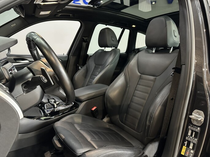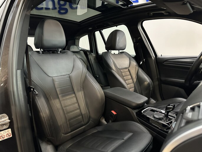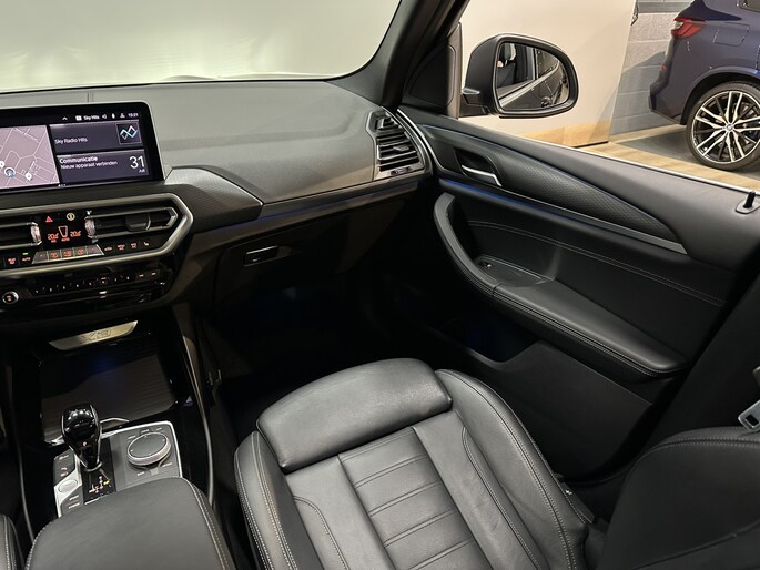 Met het digitale dashboard kunt u de cockpit-interface naar uw voorkeur instellen. Een onopvallend paaltje of een overstekend kind achter de auto brengt risico's met zich mee. Gelukkig laat de achteruitrijcamera feilloos zien of alles veilig is. Deze BMW X3 is 'connected'. Belangrijke functies worden permanent gemeten en zijn uit te lezen via een speciale app, ook op afstand. Onderweg kunt u veilig genieten van het audio-installatiesysteem met DAB-radio en het navigatiesysteem met harde schijf. Want in deze BMW bedient u ze vanaf het stuurwiel of met uw stem. Deze BMW X3 is voorzien van sensoren aan de achterzijde om een achteropkomend verkeer waarschuwing te geven als de afstand tussen u en een achterligger te klein is. Ook automatische airconditioning, sportstuur met schakelpaddels, regen- en lichtsensor, cruise control, dvd-systeem en automatisch dimmende buitenspiegels zijn aan boord.